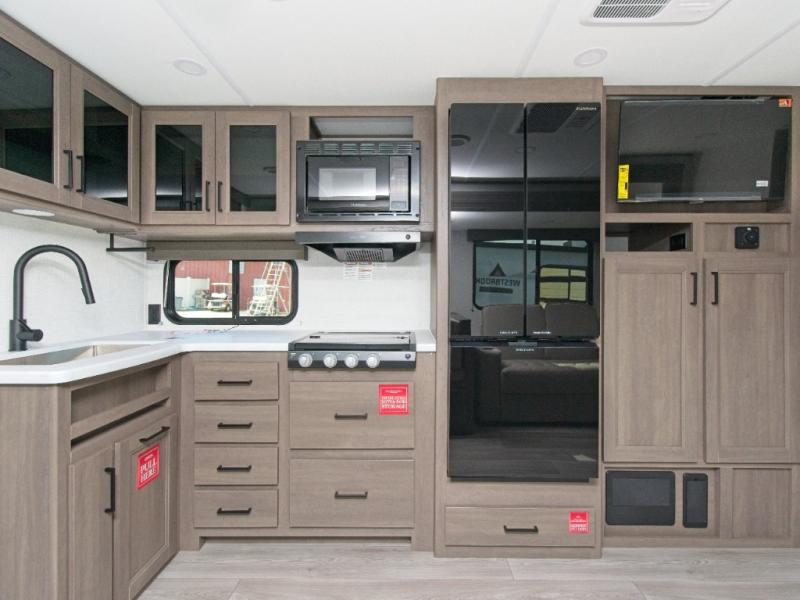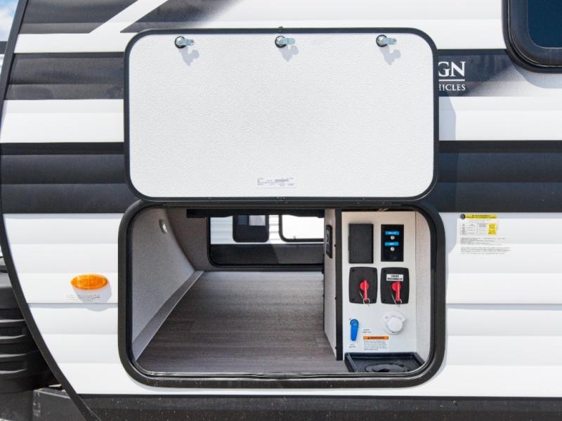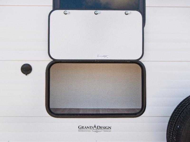 Grand Design’s Transcend travel trailers are built with Quad Seal technology, residential insulated walls, and a heated, enclosed underbelly for year-round durability. Enjoy premium touches like JBL interior/exterior speakers, black automotive glass entry door, and Safe-T-Rail assist handle.