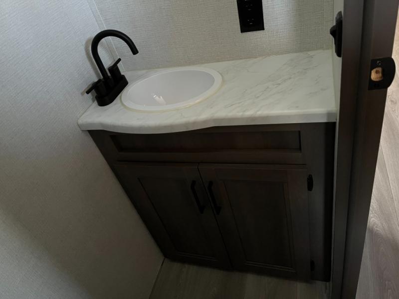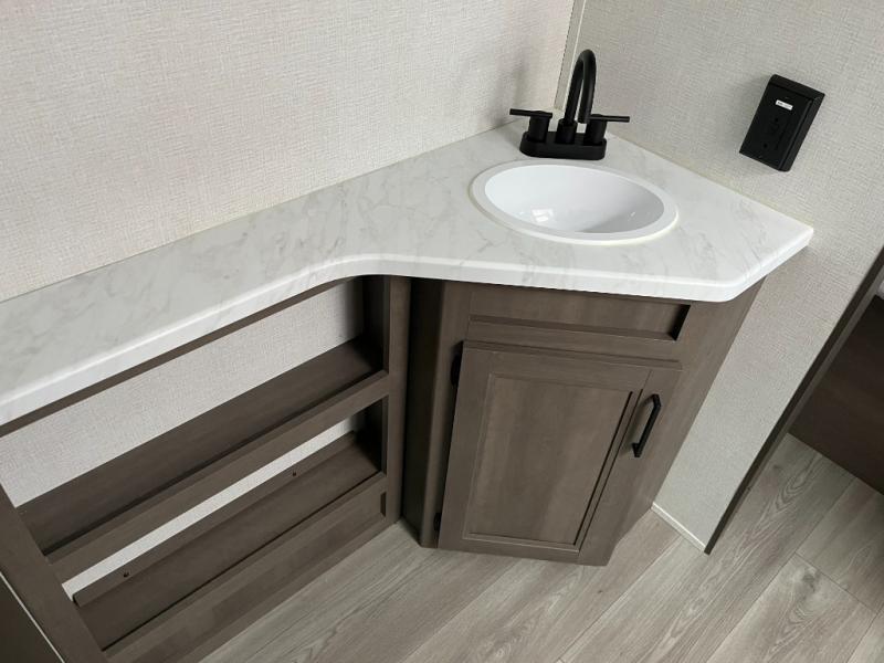 No need to wait for campground facilities — the Transcend Xplor 305BHT includes a full bathroom with a shower, toilet, and vanity. With thoughtful layout and quality fixtures, this space makes every day routines easy and comfortable, helping you stay refreshed no matter where you camp.