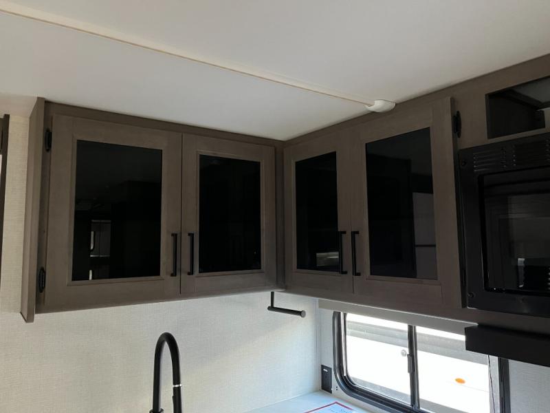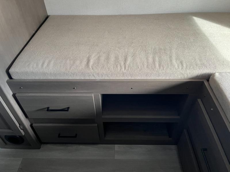 The front bedroom offers a peaceful place to rest after a full day of fun. Comfortable sleeping space, ample storage, and privacy make this area feel more like a cozy home bedroom than a travel trailer. It’s the perfect place to recharge so you’re ready for a new day of adventure.