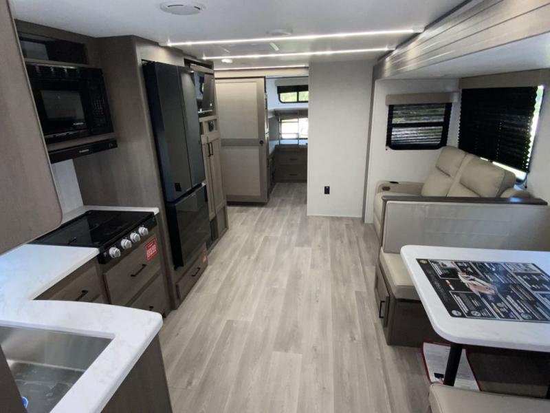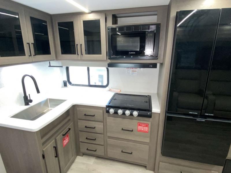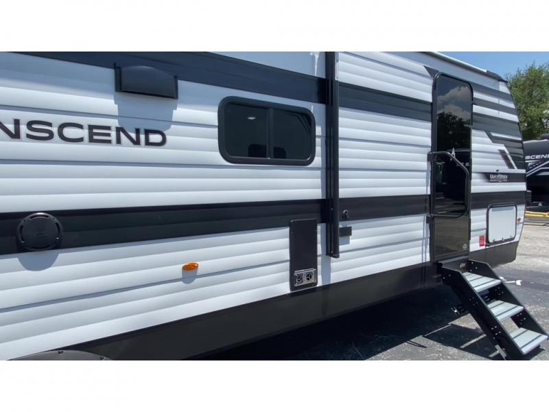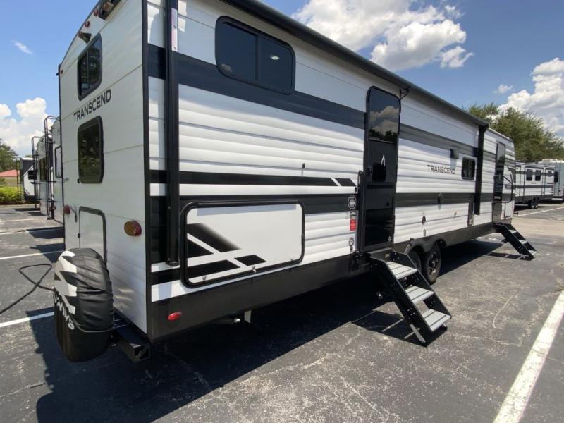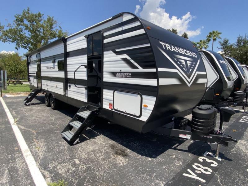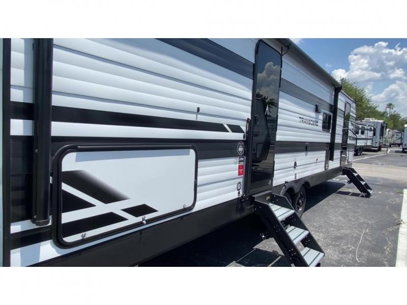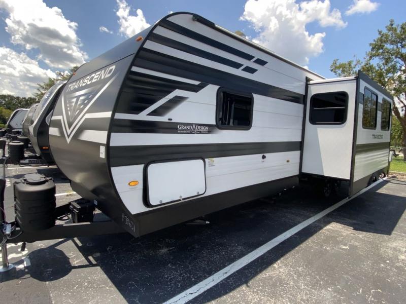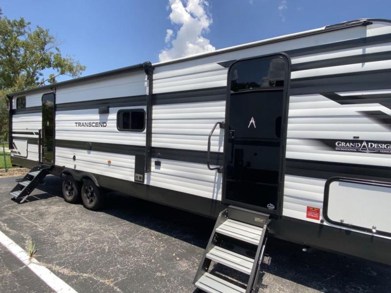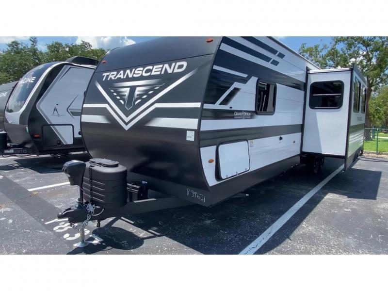 With any Transcend travel trailer by Grand Design, you will enjoy upscale appointments and convenient amenities to make each camping experience one to remember! The Quad Seal technology, residential insulated walls, plus heated and enclosed underbelly with suspended tanks make these units solid and durable. There is a black automotive glass door outside, along with a Safe-T-Rail assist on the main entry door, backup camera prep, and a universal docking station. JBL interior and exterior speakers plus a JBL head unit will let you listen to your favorite tunes as you visit under the power awning with LED strip lights. Inside, you'll enjoy multiple outlets to keep your gadgets charged, thermoformed and seamless countertops, and a 6' 6" interior height so you won't feel closed in. The Solar Prep Package will allow you to enjoy off-grid capabilities with a 200W solar panel, which is wired for up to 600W, a 30 AMP Bluetooth solar controller, a 2000W inverter prep, and more!