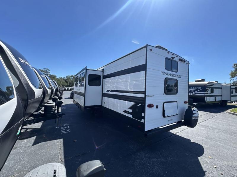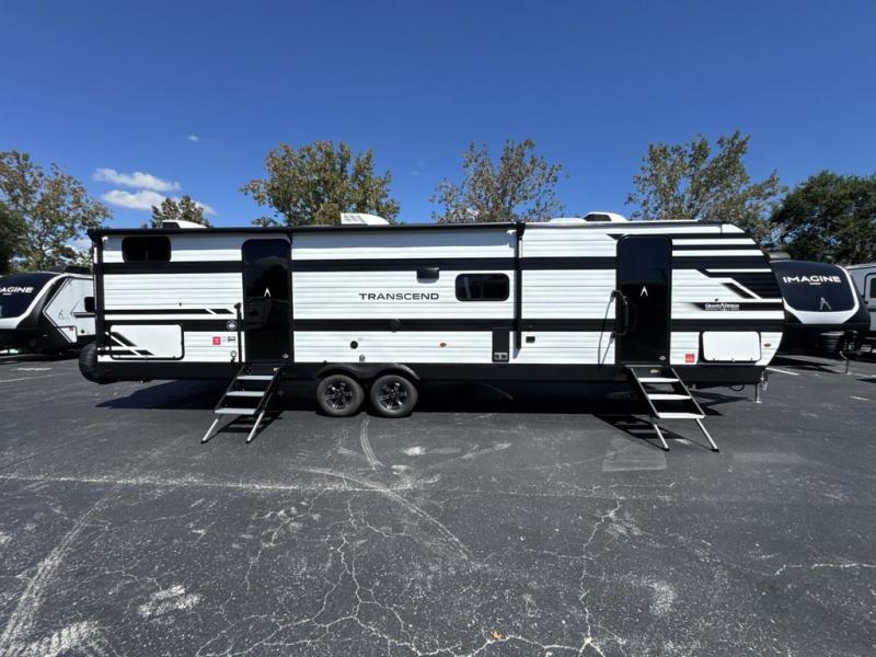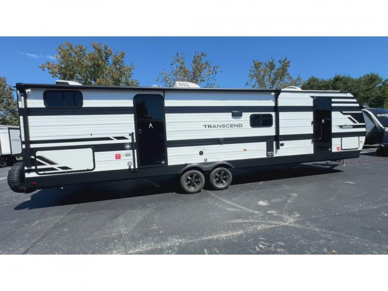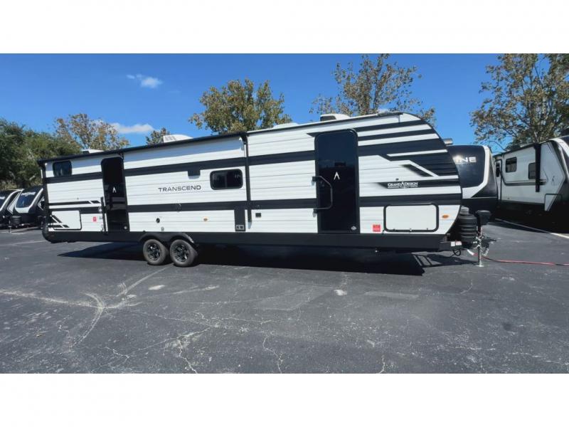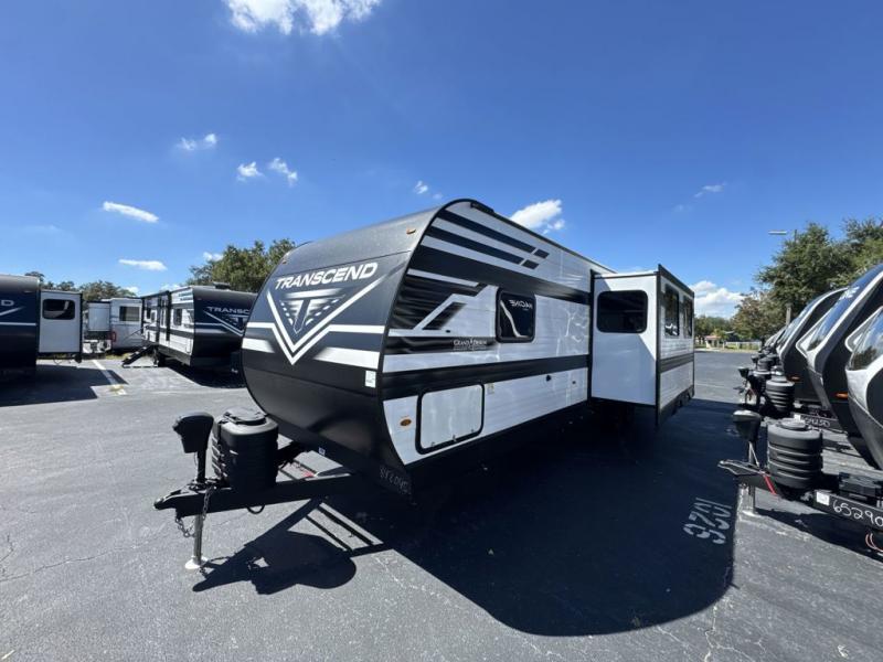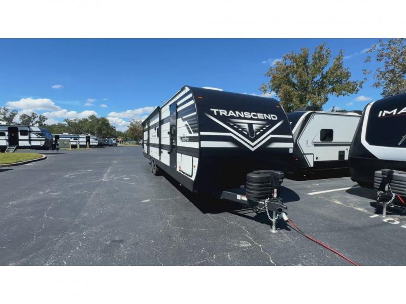 With any Transcend travel trailer by Grand Design, you will enjoy upscale appointments and convenient amenities to make each camping experience one to remember! The Quad Seal technology, residential insulated walls, plus heated and enclosed underbelly with suspended tanks make these units solid and durable. There is a black automotive glass door outside, along with a Safe-T-Rail assist on the main entry door, backup camera prep, and a universal docking station. JBL interior and exterior speakers plus a JBL head unit will let you listen to your favorite tunes as you visit under the power awning with LED strip lights. Inside, you'll enjoy multiple outlets to keep your gadgets charged, thermoformed and seamless countertops, and a 6' 6" interior height so you won't feel closed in. The Solar Prep Package will allow you to enjoy off-grid capabilities with a 200W solar panel, which is wired for up to 600W, a 30 AMP Bluetooth solar controller, a 2000W inverter prep, and more!