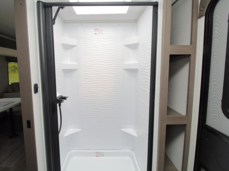 Built with Quad Seal technology, residential insulated walls, and a heated/enclosed underbelly, the Transcend ensures durability in all seasons. Standard features include JBL interior/exterior speakers, backup camera prep, multiple USB/outlets, thermoformed countertops, and a 6'6" interior height. For extended adventures, the Solar Prep Package comes with a 200W solar panel, Bluetooth solar controller, and prep for up to 600W with a 2000W inverter.