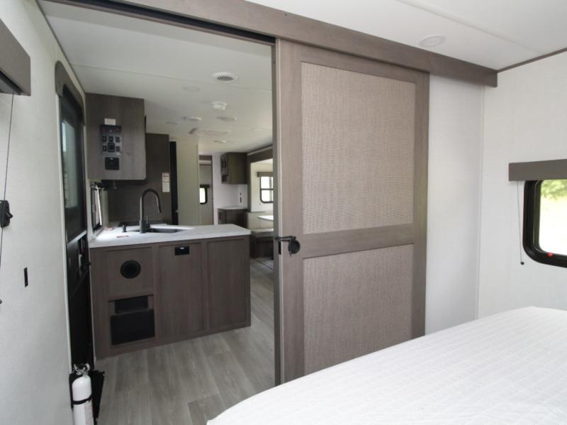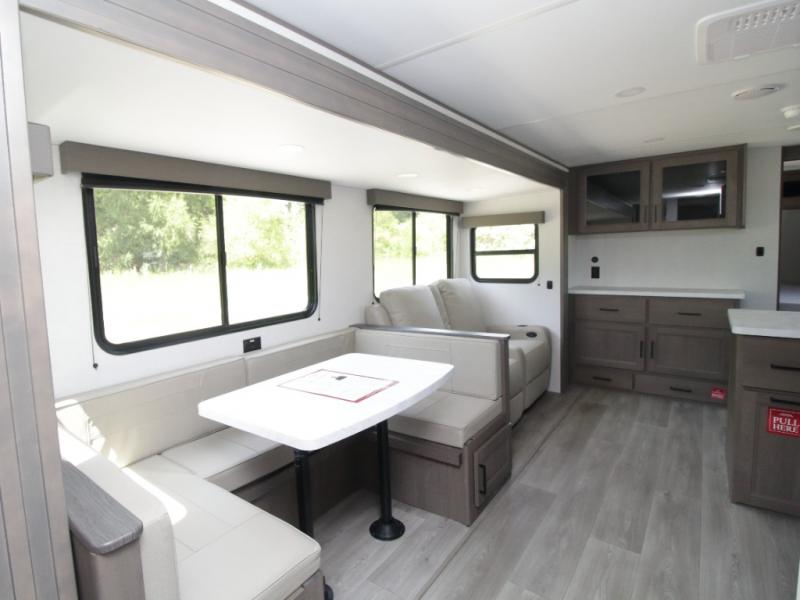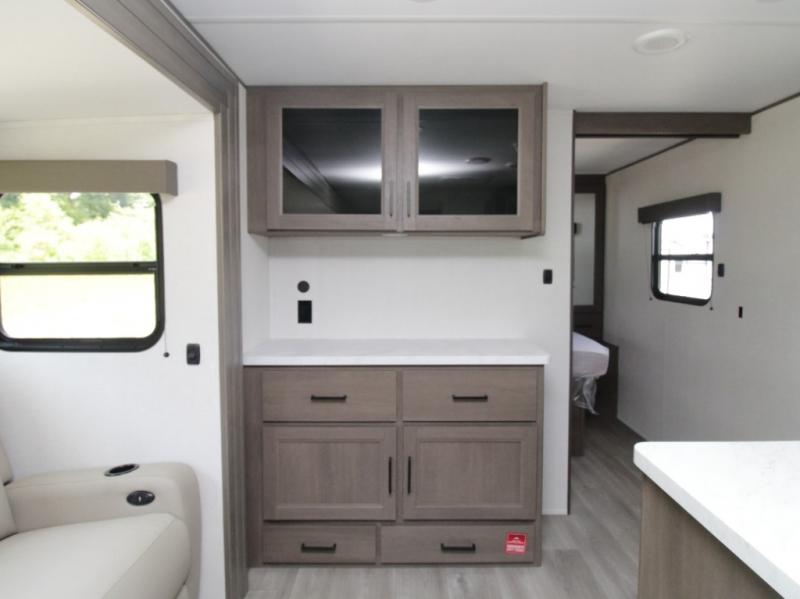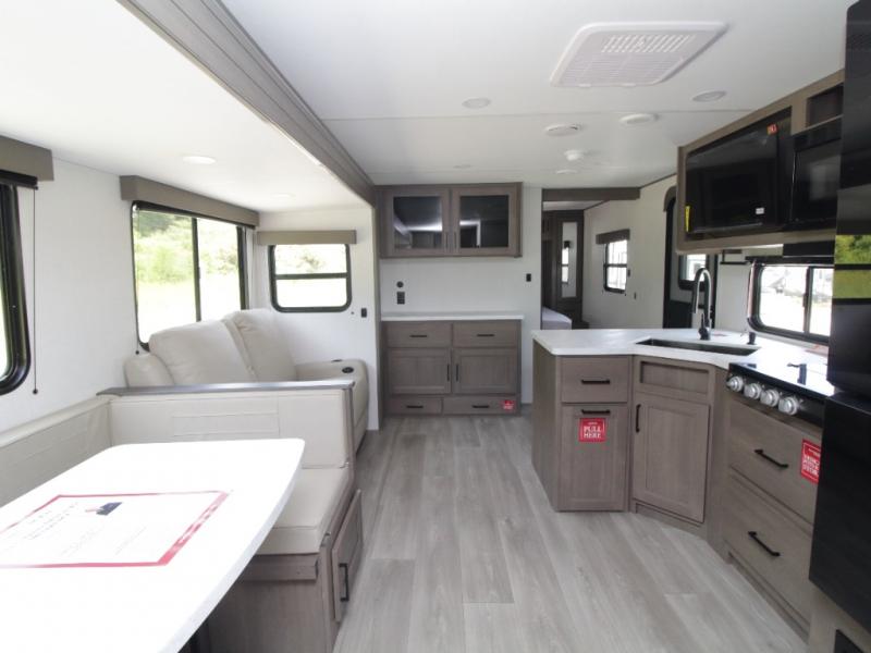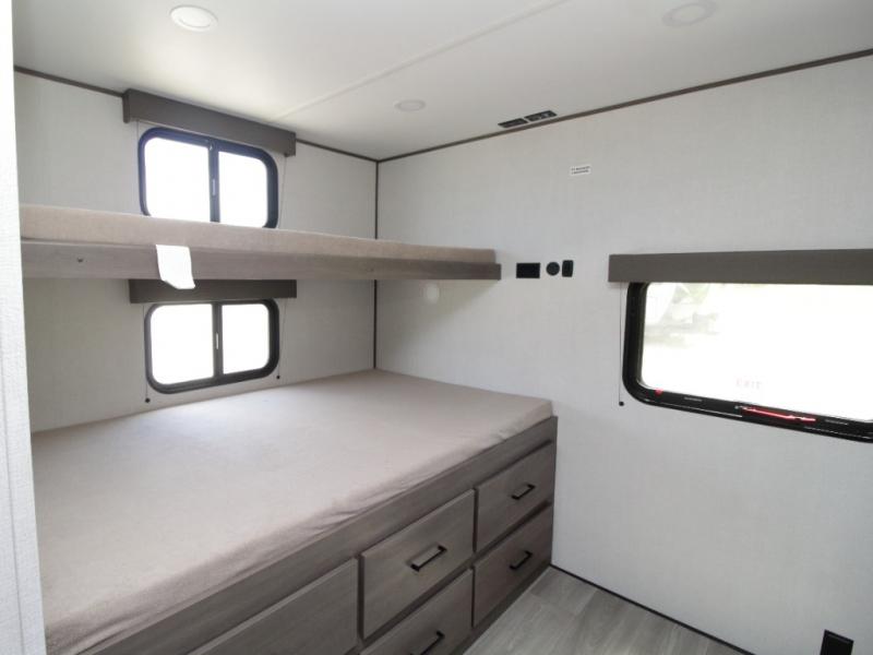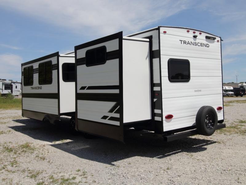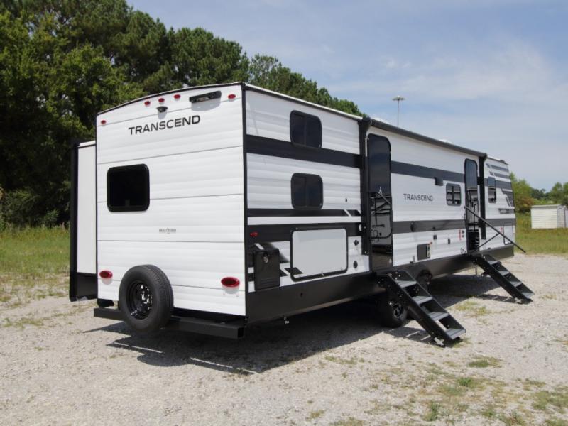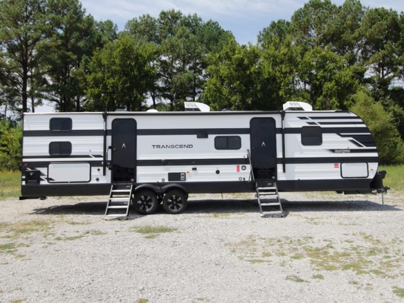 Bring the whole crew along in the Grand Design Transcend 325BHT, a spacious travel trailer designed for large families and group camping. The rear bunkhouse offers sleeping for up to five with three bunks, a sleeper sofa, and storage drawers.