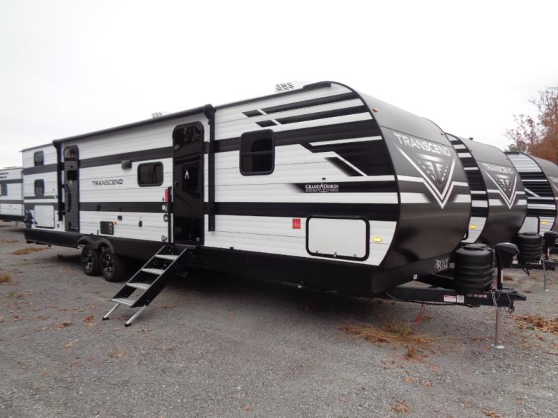 With any Transcend travel trailer by Grand Design, you will enjoy upscale appointments and convenient amenities to make each camping experience one to remember! The Quad Seal technology, residential insulated walls, plus heated and enclosed underbelly with suspended tanks make these units solid and durable. There is a black automotive glass door outside, along with a Safe-T-Rail assist on the main entry door, backup camera prep, and a universal docking station. JBL interior and exterior speakers plus a JBL head unit will let you listen to your favorite tunes as you visit under the power awning with LED strip lights. Inside, you'll enjoy multiple outlets to keep your gadgets charged, thermoformed and seamless countertops, and a 6' 6" interior height so you won't feel closed in. The Solar Prep Package will allow you to enjoy off-grid capabilities with a 200W solar panel, which is wired for up to 600W, a 30 AMP Bluetooth solar controller, a 2000W inverter prep, and more!