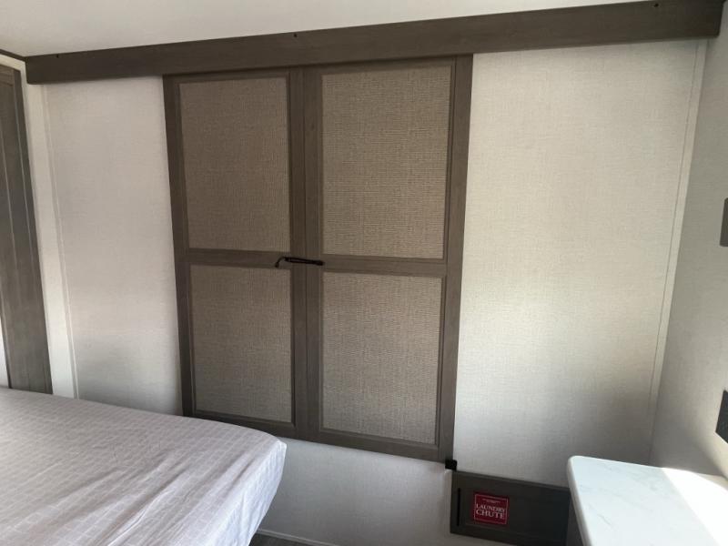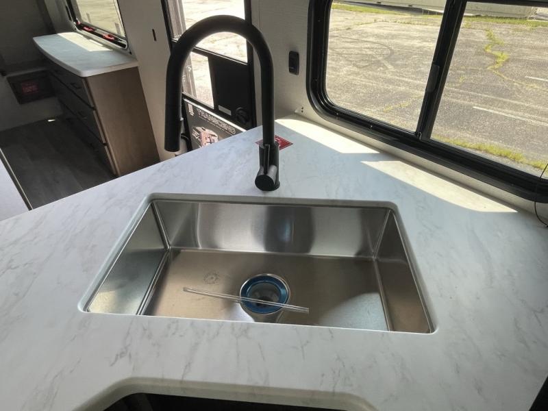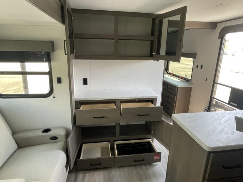 Whether you're hitting the road with kids, friends, or both, the 335BHT delivers flexible sleeping arrangements and smart storage. The rear bunkhouse includes three bunks, a sleeper sofa, and built-in drawers—perfect for keeping things organized. The private front bedroom includes a queen bed slide and washer and dryer prep for extended stays.
