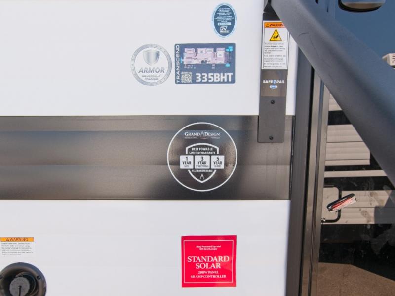 Inside, enjoy thermoformed seamless countertops, JBL interior/exterior speakers, 6'6" ceiling height, and Compass Connect smart control system for managing your RV from your phone. With premium finishes and thoughtful design, the Transcend 335BHT is ready to reflect your lifestyle—wherever the road takes you.