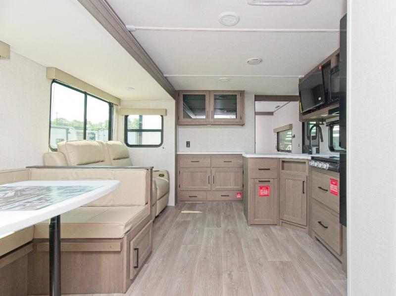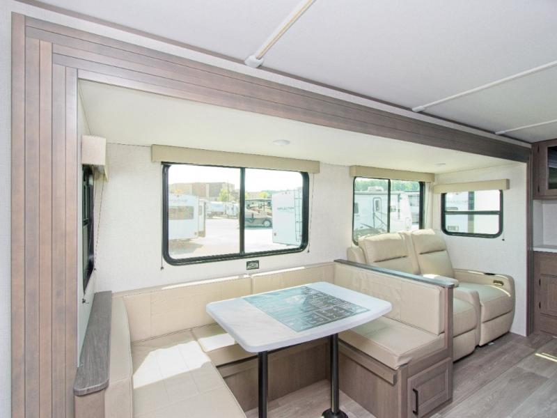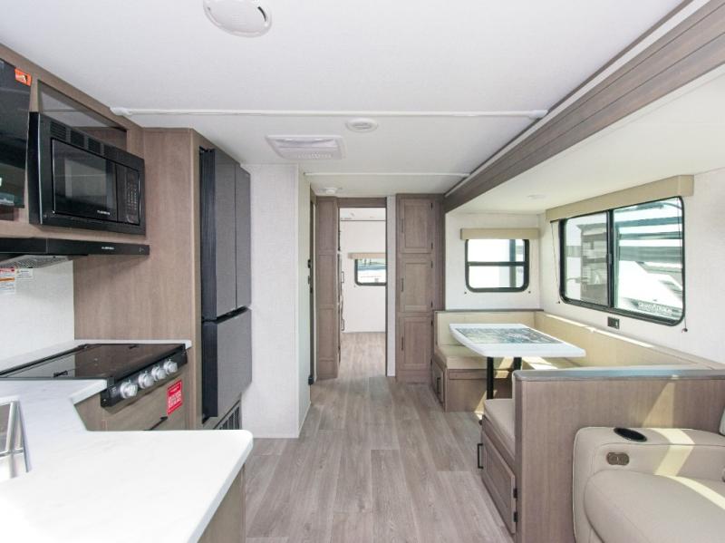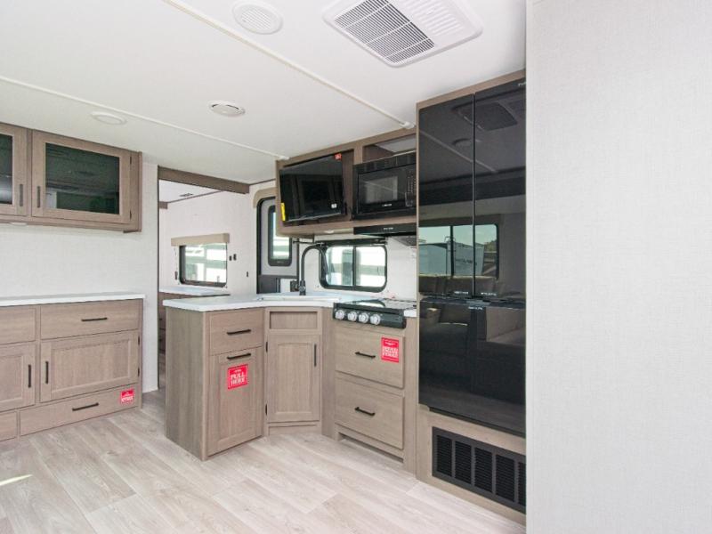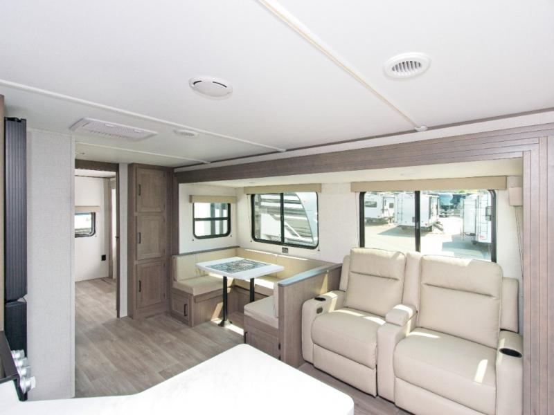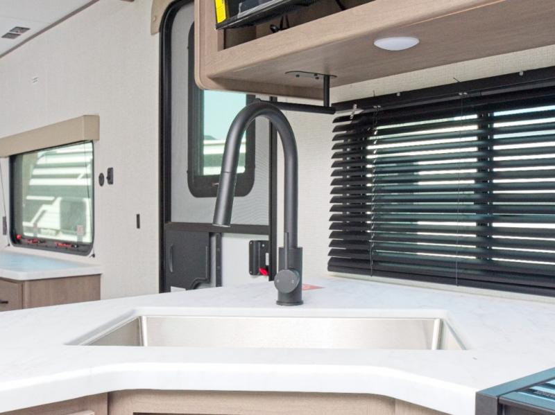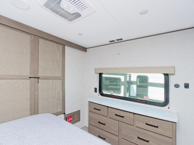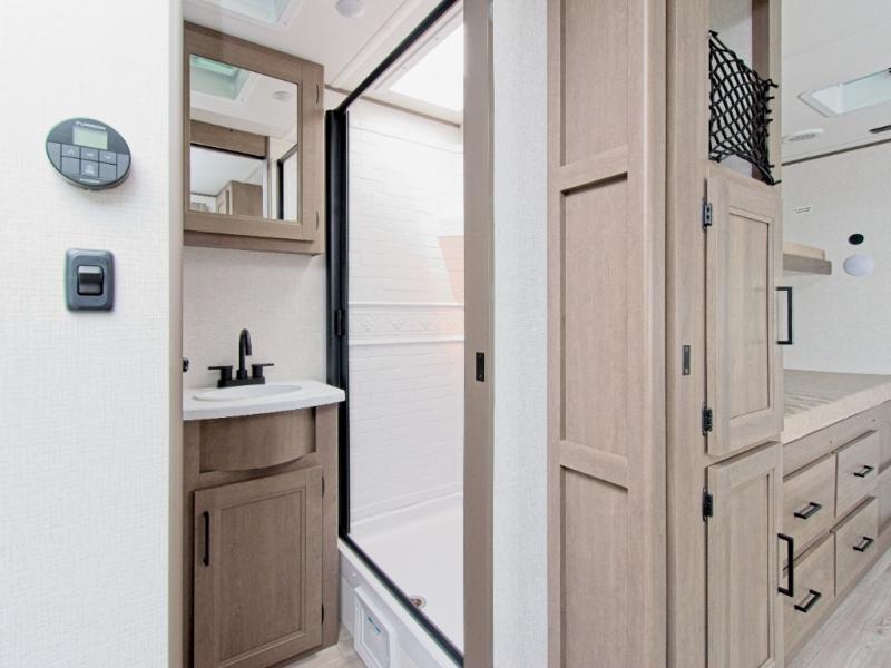 Grand Design’s Transcend line is known for its Quad Seal construction, residential insulated walls, and heated enclosed underbelly, making it perfect for year-round camping. The Solar Prep Package includes a 200W solar panel, Bluetooth solar controller, and 2000W inverter prep, giving you the freedom to camp off-grid.