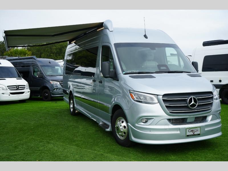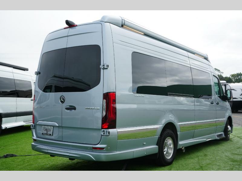 Explore the country in unmatched comfort with the Grech RV Strada-ion Class B diesel motorhome – Lounge Edition, where luxury craftsmanship meets modern technology. Built on the reliable Mercedes-Benz Sprinter 3500XD 170” extended high-roof chassis, this Class B coach offers you and your passengers a premium experience, whether you're cruising scenic highways or parked at your favorite festival or tailgate.