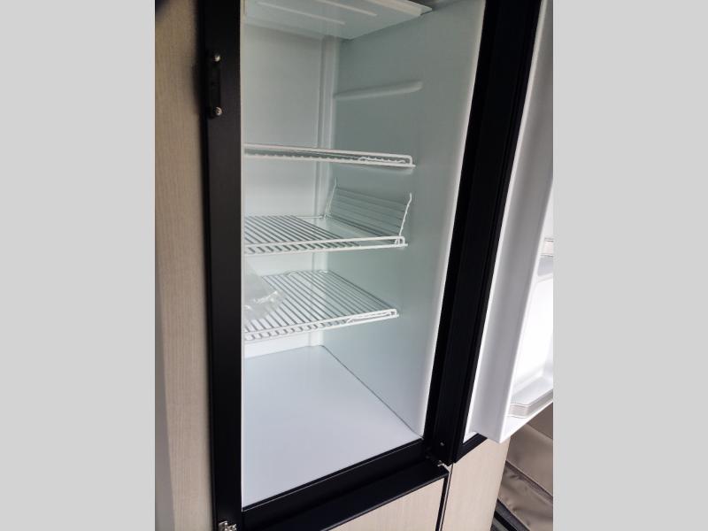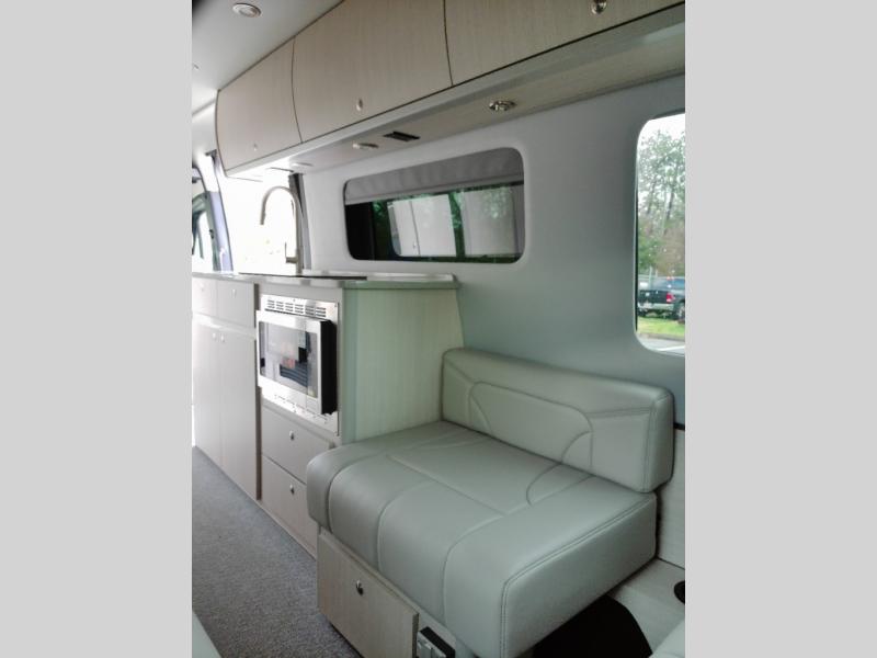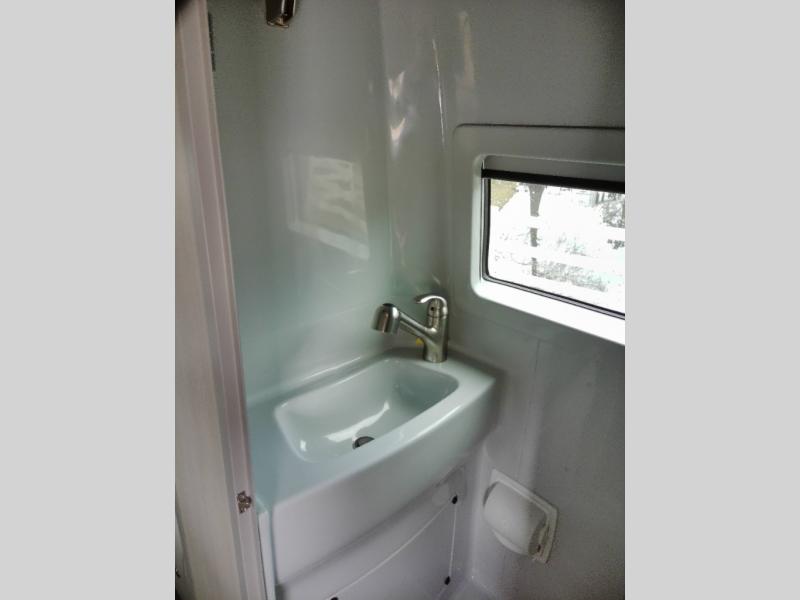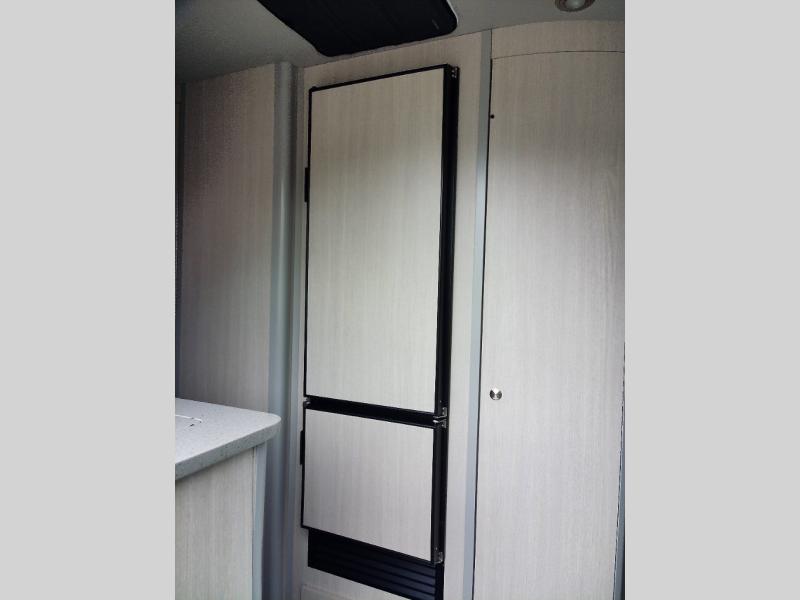 Luxury, functionality and sleeping for two is found in this versatile coach. There are seatbelts for seven for day trips with friends and a power sofa bed for couple's weekends. You will love the two captain's chairs that turn towards the rear for more seating once at your destination, and storage for your clothing is next to the wet bath. The private enclosed wet bath also includes a window and privacy shade. The cook can make meals using the galley kitchen with a farmhouse style sink, combo microwave/convection/air fryer and a two burner propane cooktop.