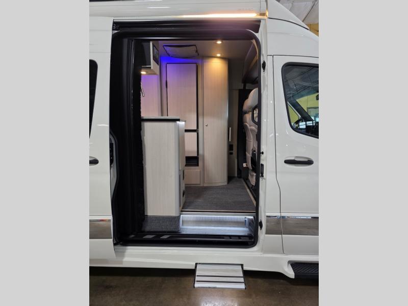 The Strada-ion Class B diesel motorhomes include Grech RV's commitment to excellence through uncompromising efforts to build a beautiful and reliable coach with luxury amenities and the highest level of standard equipment. Some of these features include an air suspension which provides the smoothest and most luxurious ride possible, a custom fiberglass body kit, and an exterior shower with a handheld wand for added convenience. Inside, you will love the solid surface countertop, the Ultraleather rear seating surfaces, the hardwood cabinets with radius doors, and the diesel-powered Timberline system that offers a tankless hot water heater, furnace and heating. Probably the most enticing feature found on the Strada-ion is the Grech Power System. This package comes with a Lithionics 51V battery system, a Garmin SERV+ house control system, a Victron Blue Power 3,000W smart inverter, and an Inline chassis battery charger to name just a few features. All of this provides your coach with clean and quiet energy to keep your adventures going!