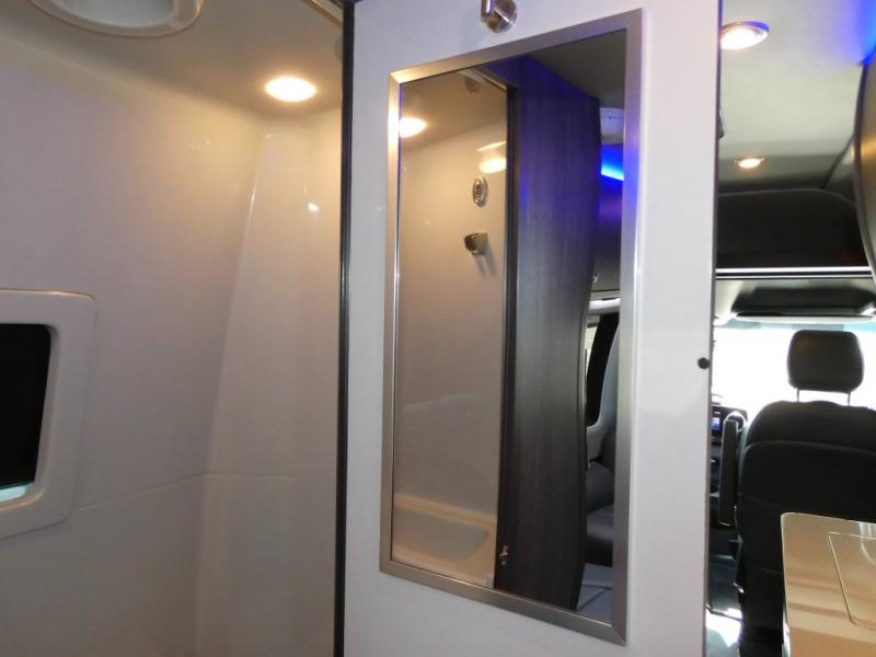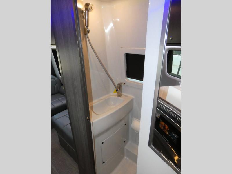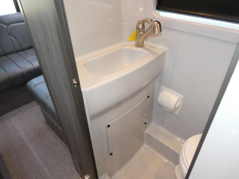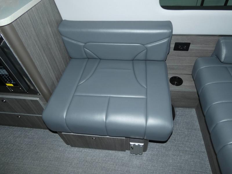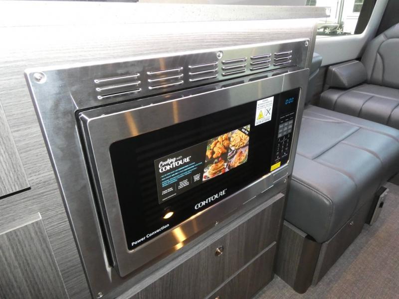 When you want to travel to games, events or for vacations, this coach allows you to in comfort, luxury and with the sophistication you desire! There are two captain's chairs in the cab that swivel towards the rear for more seating once stopped. You will find sleeping space for two on the rear power sofa bed, plus a table with a mount system to dine at with seating for five in the back. Everyone can watch the 24" LED TV with Apple TV, and enjoy the premium sound system, the USB and 110V charging ports for your electronics, plus the galley kitchen amenities. There is a farmhouse style sink with a faucet and pull-out sprayer, plus the combo microwave/convection/Air Fryer and the induction cooktop allow the chef to make warm meals for everyone. The enclosed private wet bath provides a window and privacy shade, a molded sink with a vanity mirror, a handheld showerhead, a ceramic toilet with foot flush and a retractable clothes line to dry your towels and swimsuits.