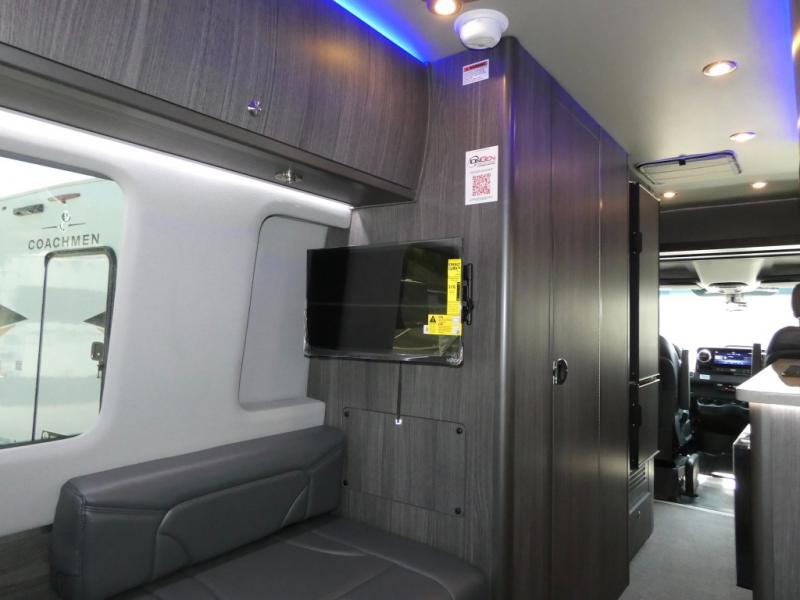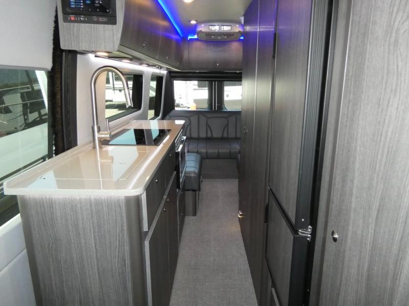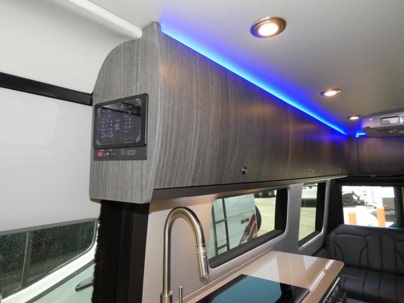 With each Terreno-ion AWD Class B diesel motorhome by Grech RV, you can travel in complete luxury. The Grech Power system with a Lithionics 51V battery system will make going off-grid easier than ever. This system also features a Garmin SERV+ house control system, a Victron Blue Power 3,000W smart inverter, a roof-mounted solar panel system, and more features to keep you powered up! You will also appreciate the all-wheel drive and the air suspension for the smoothest ride out there. A Timberline System provides continuous flow of hot water, which is fueled by the Sprinter fuel, and there is a 15,000 BTU Gree-Eco-Cool A/C with a heat pump to keep you cool during the summer. Head inside to enjoy the LED ambient accent lighting, vinyl woven flooring, solid surface kitchen countertop, and many more comforts.