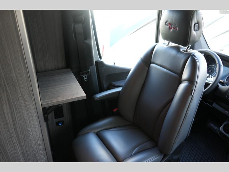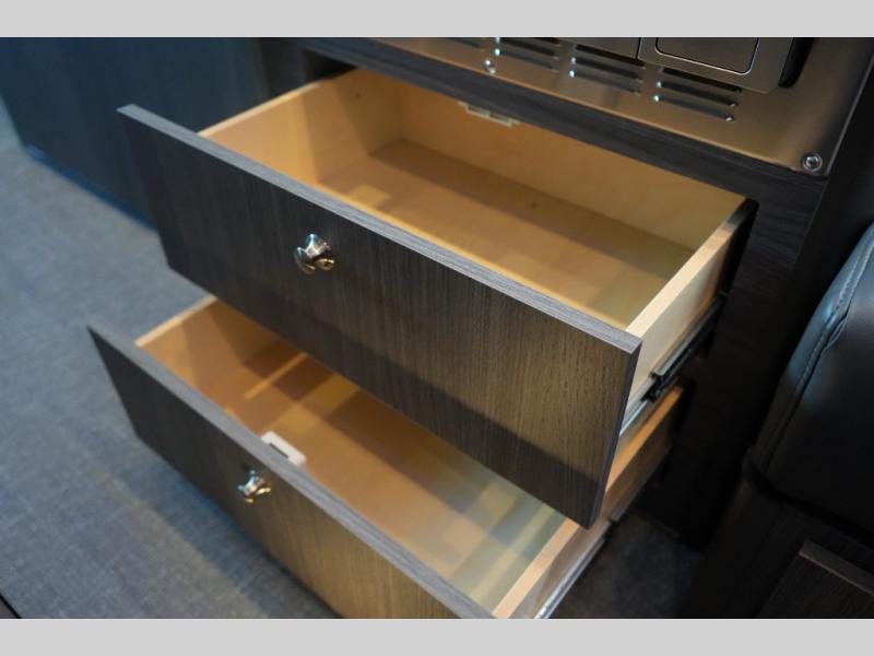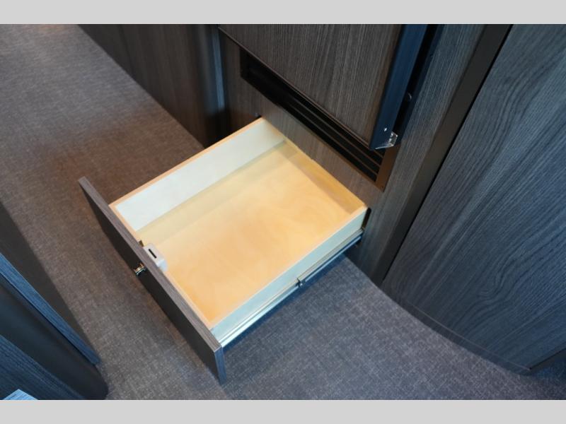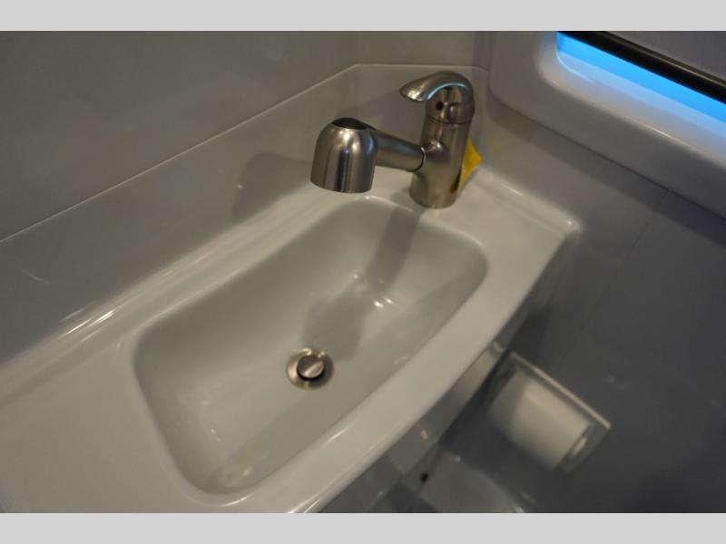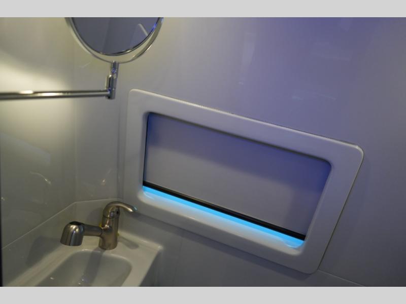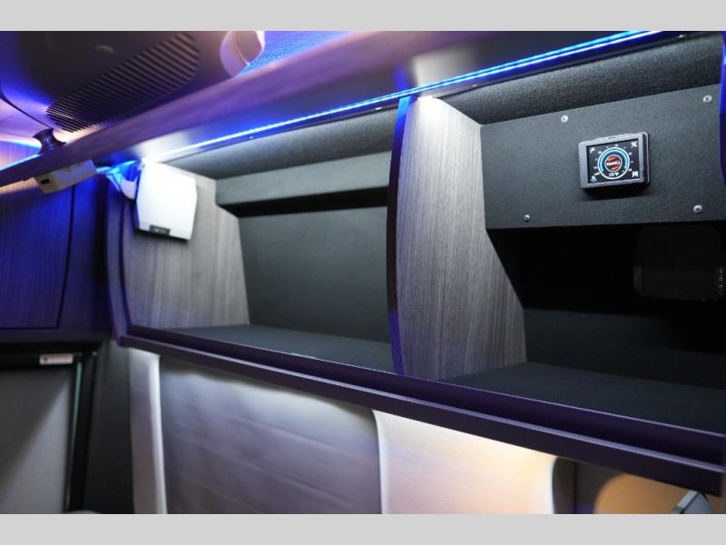 Enjoy entertainment on the 24" LED TV with Apple TV, complemented by a premium sound system. LED ambient lighting, vinyl woven flooring, and solid-surface countertops add a refined residential feel. USB and 110V charging ports keep devices powered on the go.
