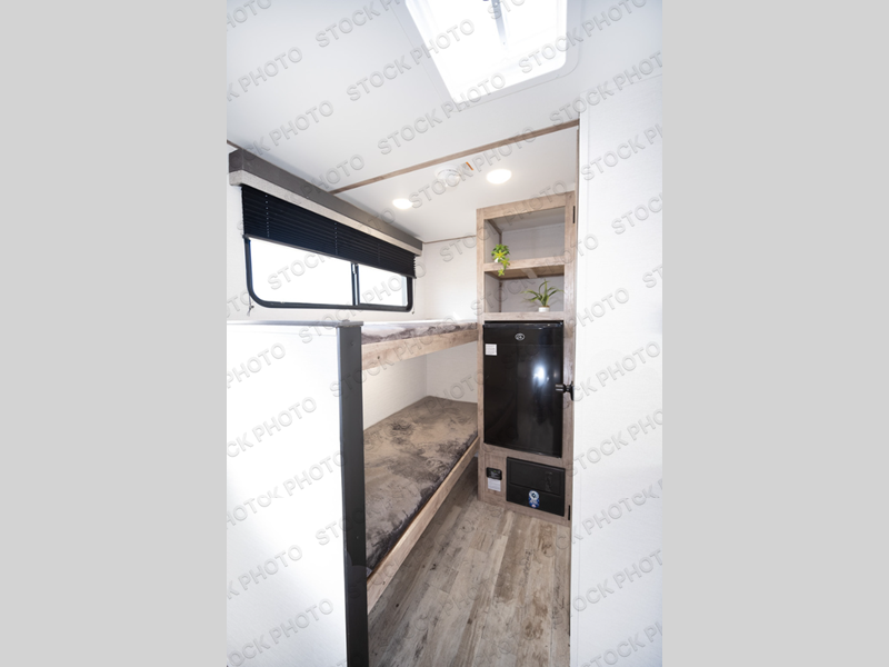 This travel trailer is ideal for families seeking adventure and relaxation! The incredible microwave and refrigerator simplify meal planning, while the two-burner cooktop lets you cook up delicious meals for the whole family. The bunk beds are a hit with kids, providing a fun and cozy sleeping space, while the comfortable bed is perfect for parents to unwind. Ample storage space is available, including flip-up storage and overhead shelves, keeping your belongings organized and within reach.