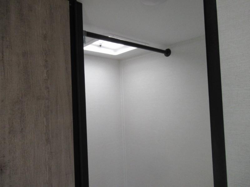 You will love these travel trailer appliances! The sleek microwave and spacious refrigerator make meal prep effortless, while the convenient two-burner cooktop lets you cook up tasty meals on the go. The cozy dinette is perfect for savoring meals or enjoying quality time, and the plush bed ensures a rejuvenating night's sleep. Thoughtful storage solutions, including flip-up storage and overhead shelves, keep your belongings tidy and easily accessible. This travel trailer is perfect for anyone seeking a peaceful and adventurous retreat. With its clever design and functional features, it's easy to tow and park, allowing you to explore scenic destinations with ease.