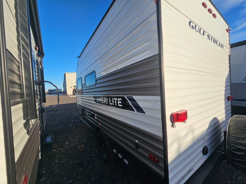 If you're looking for an affordable, lightweight travel trailer, you've found it in the Ameri-Lite Super Lite by Gulf Stream. These models may be lighter in weight, but they don't skimp out on comfortable features. Each unit includes high-performance vinyl flooring throughout, a white kitchen sink, craft-made cabinetry with designer pulls, plus fabric-wrapped box valances to make you feel right at home. You'll enjoy the 6' 8" interior height, wood ceiling trim, multiple USB ports, and more features included within the Camping Package. These models also include a tankless water heater, a central control panel to control your unit's functions, plus plenty of safety features you are sure to appreciate for your family. You can't go wrong with an Ameri-Lite Super Lite travel trailer. Choose your favorite floorplan today!