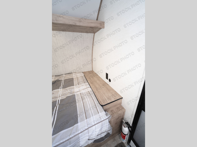 You will love these travel trailer appliances! The sleek microwave and spacious refrigerator make meal prep effortless, while the convenient two-burner cooktop lets you cook up tasty meals on the go. The cozy dinette is perfect for savoring meals or enjoying quality time, and the plush bed ensures a rejuvenating night's sleep. Thoughtful storage solutions, including flip-up storage and overhead shelves, keep your belongings tidy and easily accessible. This travel trailer is perfect for anyone seeking a peaceful and adventurous retreat. With its clever design and functional features, it's easy to tow and park, allowing you to explore scenic destinations with ease.