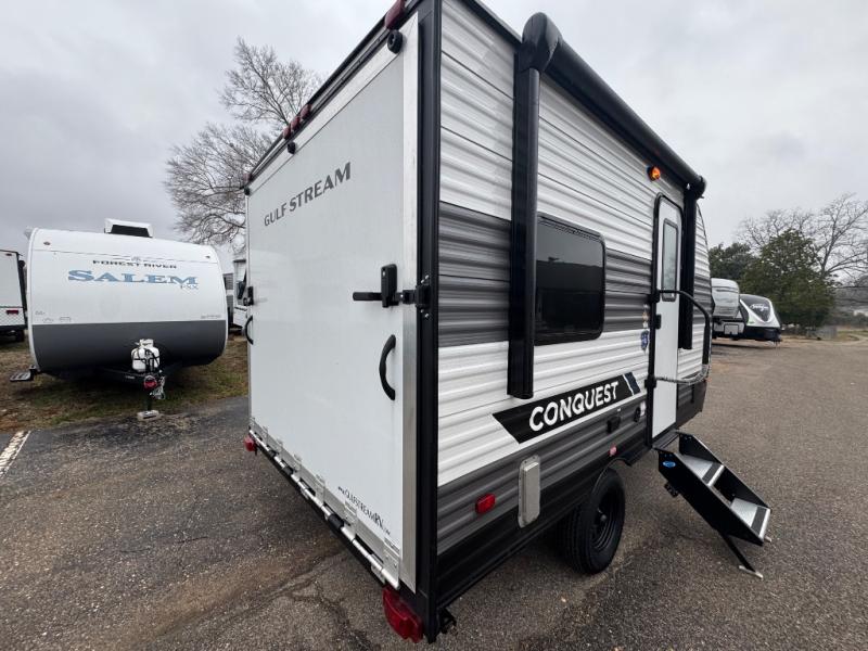 If you're looking for an affordable, lightweight toy hauler, you've found it in the Ameri-Lite Super Lite by Gulf Stream. These models may be lighter in weight, but they don't skimp out on comfortable features. Each unit includes high-performance vinyl flooring throughout, a white kitchen sink, craft-made cabinetry with designer pulls, plus fabric-wrapped box valances to make you feel right at home. You'll enjoy the 6' 8" interior height, wood ceiling trim, multiple USB ports, and more features included within the Camping Package. These models also include a tankless water heater, a central control panel to control your unit's functions, plus plenty of safety features you are sure to appreciate for your family.