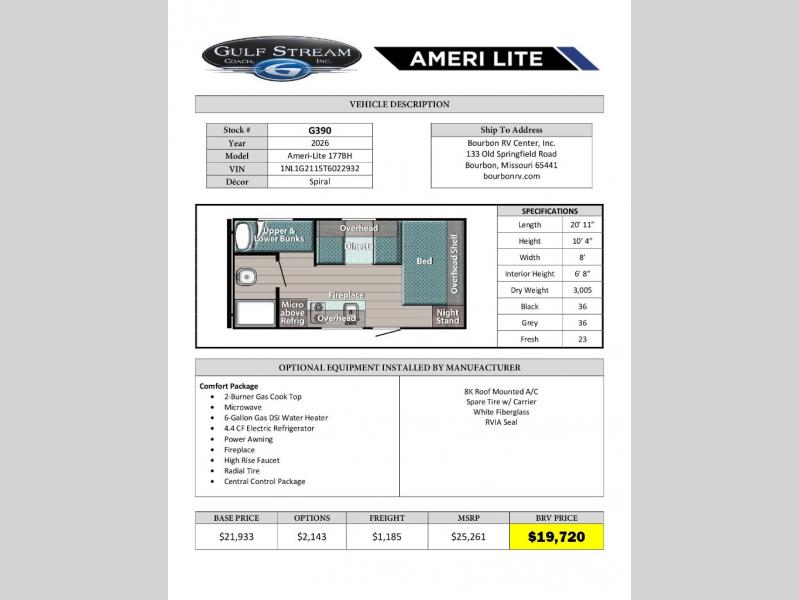 Gulf Stream RV Ameri-Lite 177BH Highlights: