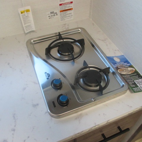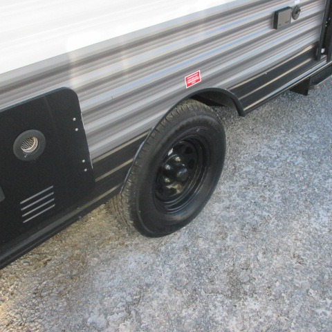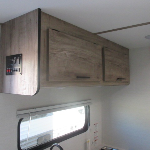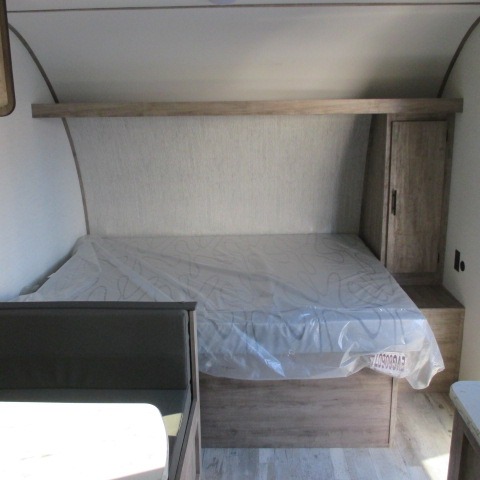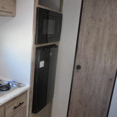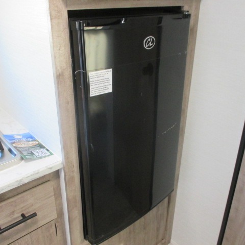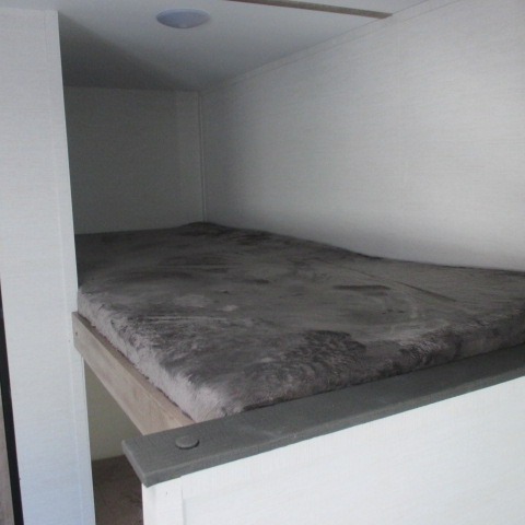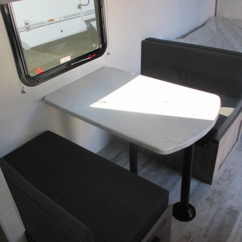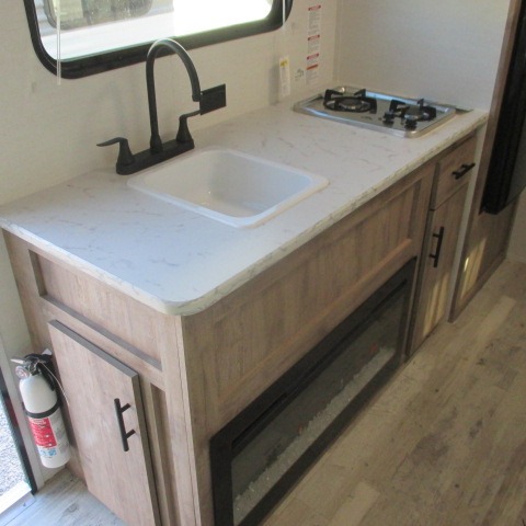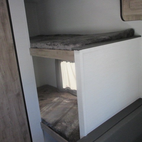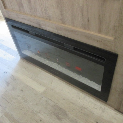 It's easier than ever to enjoy the camping lifestyle with this lightweight travel trailer. There are bunk beds for your guests or little ones, a front bed for you, plus a booth dinette that can double as dining and sleeping space. The private toilet and shower will allow you to stay clean throughout each trip, and since the sink is at the kitchen counter, someone can brush their teeth while the other showers before bed. You will love the fireplace included in this model for a more at-home feel, or you just might find yourselves outdoors under the power awning most of the day!