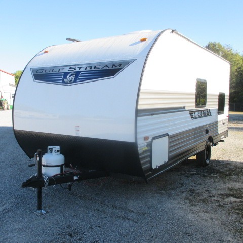If you're looking for an affordable, lightweight travel trailer, you've found it in the Ameri-Lite Super Lite by Gulf Stream. These models may be lighter in weight, but they don't skimp out on comfortable features. Each unit includes high-performance vinyl flooring throughout, a white kitchen sink, craft-made cabinetry with designer pulls, plus fabric-wrapped box valances to make you feel right at home. You'll enjoy the 6' 8" interior height, wood ceiling trim, multiple USB ports, and more features included within the Camping Package. These models also include a tankless water heater, a central control panel to control your unit's functions, plus plenty of safety features you are sure to appreciate for your family. You can't go wrong with an Ameri-Lite Super Lite travel trailer. Choose your favorite floorplan today!
