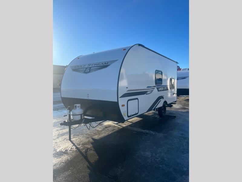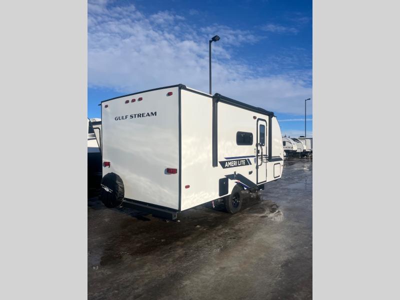 If you're looking for an affordable, lightweight travel trailer, you've found it in the Ameri-Lite Super Lite by Gulf Stream. These models may be lighter in weight, but they don't skimp out on comfortable features. Each unit includes high-performance vinyl flooring throughout, a white kitchen sink, craft-made cabinetry with designer pulls, plus fabric-wrapped box valances to make you feel right at home. You'll enjoy the 6' 8" interior height, wood ceiling trim, multiple USB ports, and more features included within the Camping Package. These models also include a tankless water heater, a central control panel to control your unit's functions, plus plenty of safety features you are sure to appreciate for your family. You can't go wrong with an Ameri-Lite Super Lite travel trailer. Choose your favorite floorplan today!