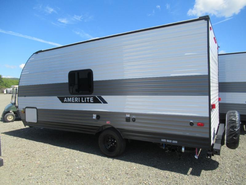 If you're looking for an affordable, lightweight travel trailer, you've found it in the Ameri-Lite Super Lite by Gulf Stream. These models may be lighter in weight, but they don't skimp out on comfortable features. Each unit includes high-performance vinyl flooring throughout, a white kitchen sink, craft-made cabinetry with designer pulls, plus fabric-wrapped box valances to make you feel right at home. You'll enjoy the 6' 8" interior height, wood ceiling trim, multiple USB ports, and more features included within the Camping Package. These models also include a tankless water heater, a central control panel to control your unit's functions, plus plenty of safety features you are sure to appreciate for your family. You can't go wrong with an Ameri-Lite Super Lite travel trailer. Choose your favorite floorplan today!