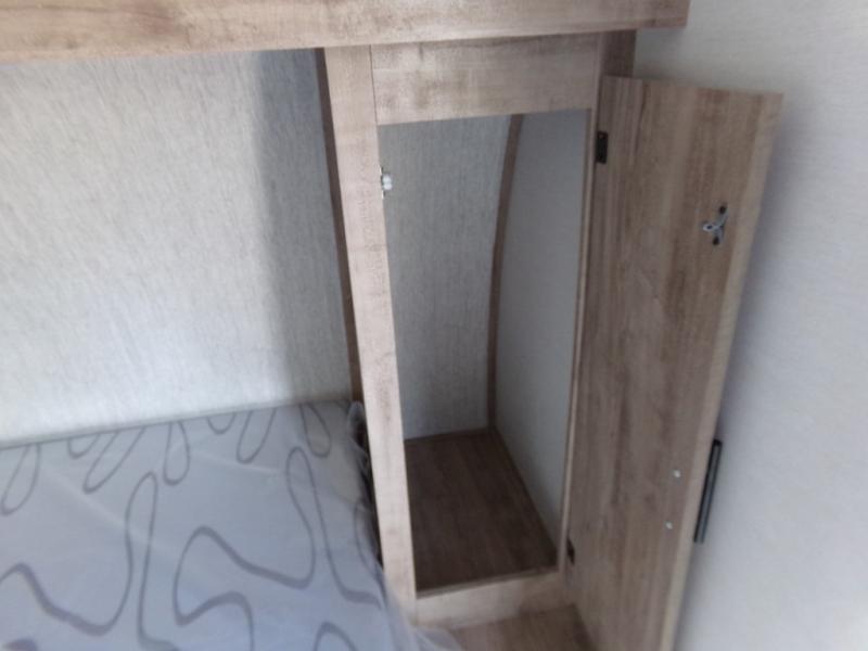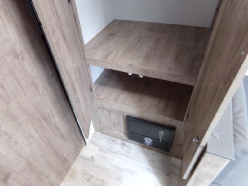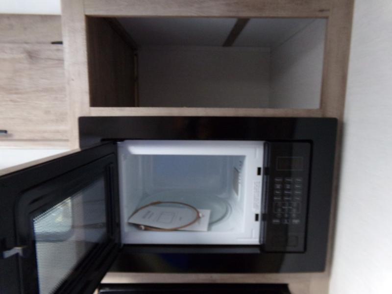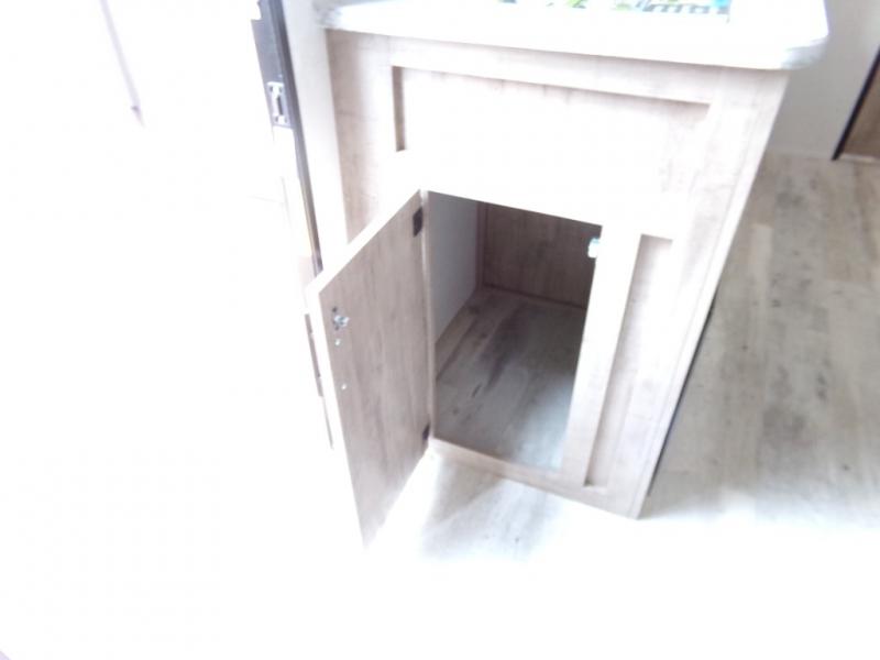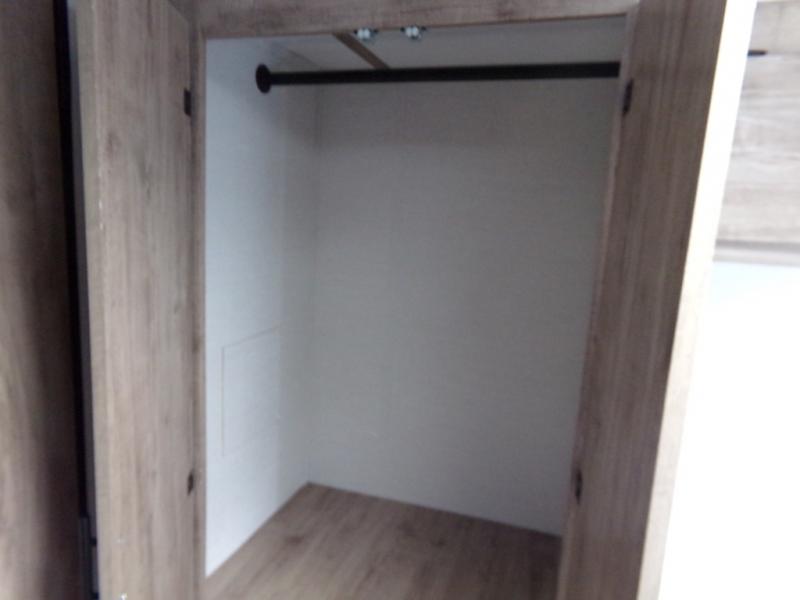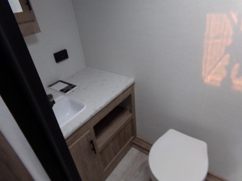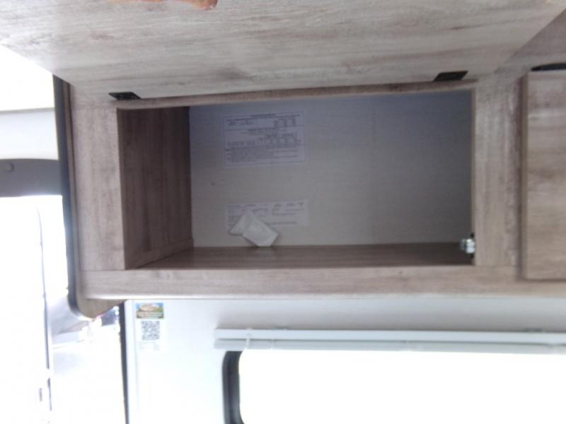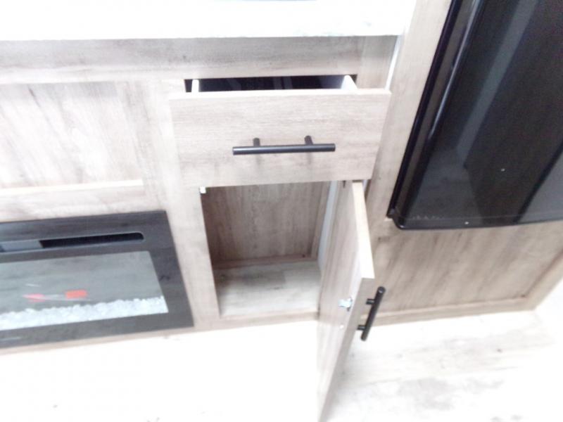 A cozy travel trailer for two or four to enjoy! This unit features a rear bath layout which includes a shower, toilet, and vanity with sink, plus medicine cabinet. No campsite facilities needed! Cook meals and snacks using the two burner cooktop and microwave oven and enjoy eating inside at the booth dinette. When you are not enjoying a meal, the dinette is a great place to play a board game or cards. There is a large closet for clothing storage, and overhead cabinets for your things as well. The front bed is perfect for two, and a nightstand is available for your personal belongings, plus more storage can be found with a large front overhead shelf. This unit even has a fireplace beneath the kitchen sink area!!