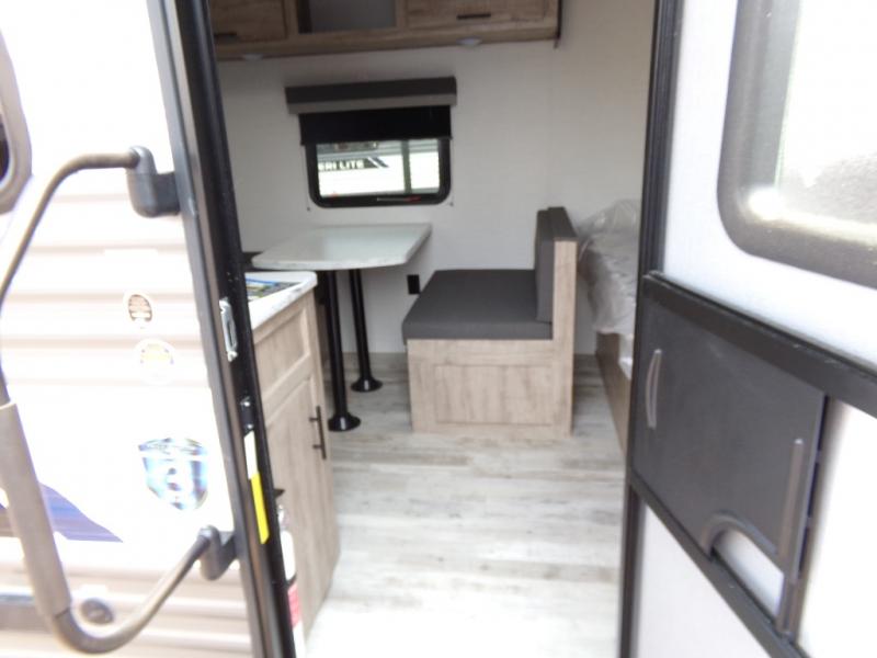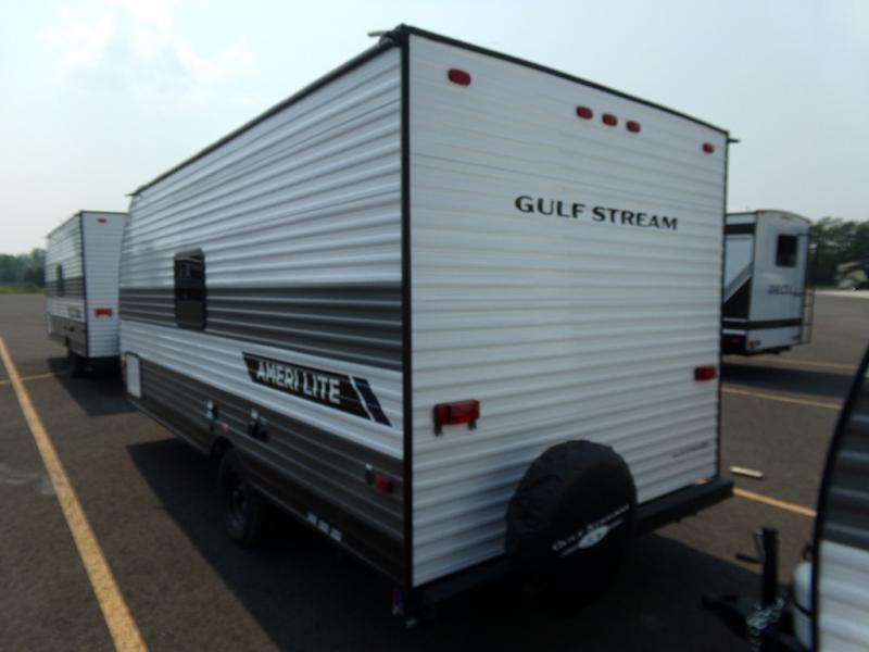 If you're looking for an affordable, lightweight travel trailer, you've found it in the Ameri-Lite Super Lite by Gulf Stream. These models may be lighter in weight, but they don't skimp out on comfortable features. Each unit includes high-performance vinyl flooring throughout, a white kitchen sink, craft-made cabinetry with designer pulls, plus fabric-wrapped box valances to make you feel right at home. You'll enjoy the 6' 8" interior height, wood ceiling trim, multiple USB ports, and more features included within the Camping Package. These models also include a tankless water heater, a central control panel to control your unit's functions, plus plenty of safety features you are sure to appreciate for your family. You can't go wrong with an Ameri-Lite Super Lite travel trailer. Choose your favorite floorplan today!