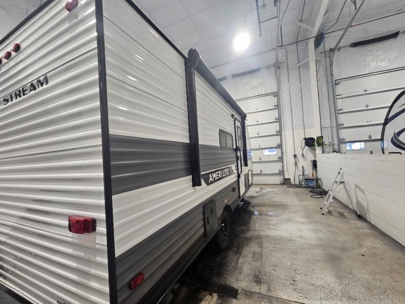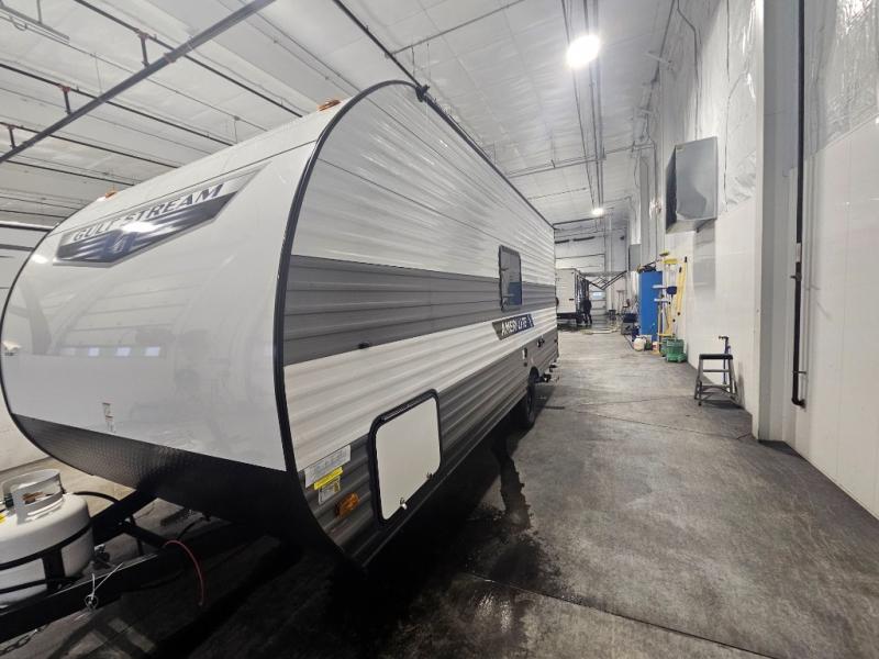 If you're looking for an affordable, lightweight travel trailer, you've found it in the Ameri-Lite Super Lite by Gulf Stream. These models may be lighter in weight, but they don't skimp out on comfortable features. Each unit includes high-performance vinyl flooring throughout, a white kitchen sink, craft-made cabinetry with designer pulls, plus fabric-wrapped box valances to make you feel right at home. You'll enjoy the 6' 8" interior height, wood ceiling trim, multiple USB ports, and more features included within the Camping Package. These models also include a tankless water heater, a central control panel to control your unit's functions, plus plenty of safety features you are sure to appreciate for your family. You can't go wrong with an Ameri-Lite Super Lite travel trailer. Choose your favorite floorplan today!