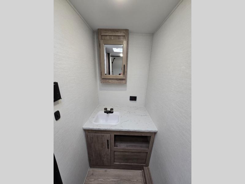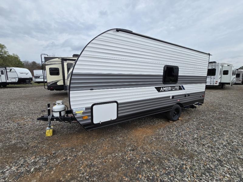 If you're looking for an affordable, lightweight travel trailer, you've found it in the Ameri-Lite Super Lite by Gulf Stream. These models may be lighter in weight, but they don't skimp out on comfortable features. Each unit includes high-performance vinyl flooring throughout, a white kitchen sink, craft-made cabinetry with designer pulls, plus fabric-wrapped box valances to make you feel right at home. You'll enjoy the 6' 8" interior height, wood ceiling trim, multiple USB ports, and more features included within the Camping Package. These models also include a tankless water heater, a central control panel to control your unit's functions, plus plenty of safety features you are sure to appreciate for your family. You can't go wrong with an Ameri-Lite Super Lite travel trailer. Choose your favorite floorplan today!