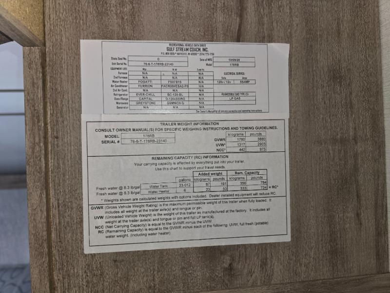 | Fresh Water Capacity | 23 gals |