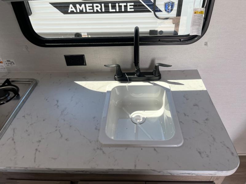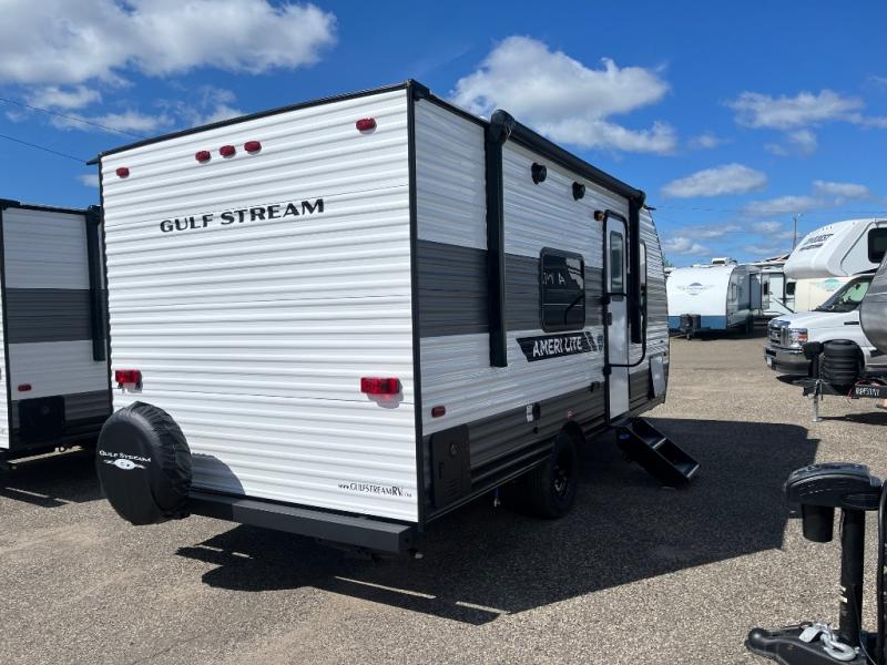 If you're looking for an affordable, lightweight travel trailer, you've found it in the Ameri-Lite Super Lite by Gulf Stream. These models may be lighter in weight, but they don't skimp out on comfortable features. Each unit includes high-performance vinyl flooring throughout, a white kitchen sink, craft-made cabinetry with designer pulls, plus fabric-wrapped box valances to make you feel right at home. You'll enjoy the 6' 8" interior height, wood ceiling trim, multiple USB ports, and more features included within the Camping Package. These models also include a tankless water heater, a central control panel to control your unit's functions, plus plenty of safety features you are sure to appreciate for your family. You can't go wrong with an Ameri-Lite Super Lite travel trailer. Choose your favorite floorplan today!