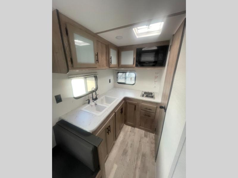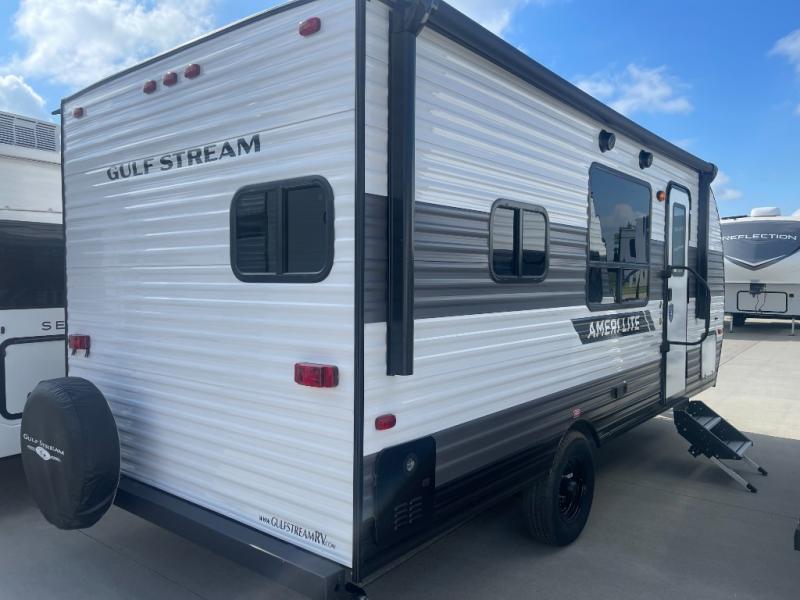 If you're looking for an affordable, lightweight travel trailer, you've found it in the Ameri-Lite Super Lite by Gulf Stream. These models may be lighter in weight, but they don't skimp out on comfortable features. Each unit includes high-performance vinyl flooring throughout, a white kitchen sink, craft-made cabinetry with designer pulls, plus fabric-wrapped box valances to make you feel right at home. You'll enjoy the 6' 8" interior height, wood ceiling trim, multiple USB ports, and more features included within the Camping Package. These models also include a tankless water heater, a central control panel to control your unit's functions, plus plenty of safety features you are sure to appreciate for your family. You can't go wrong with an Ameri-Lite Super Lite travel trailer. Choose your favorite floorplan today!