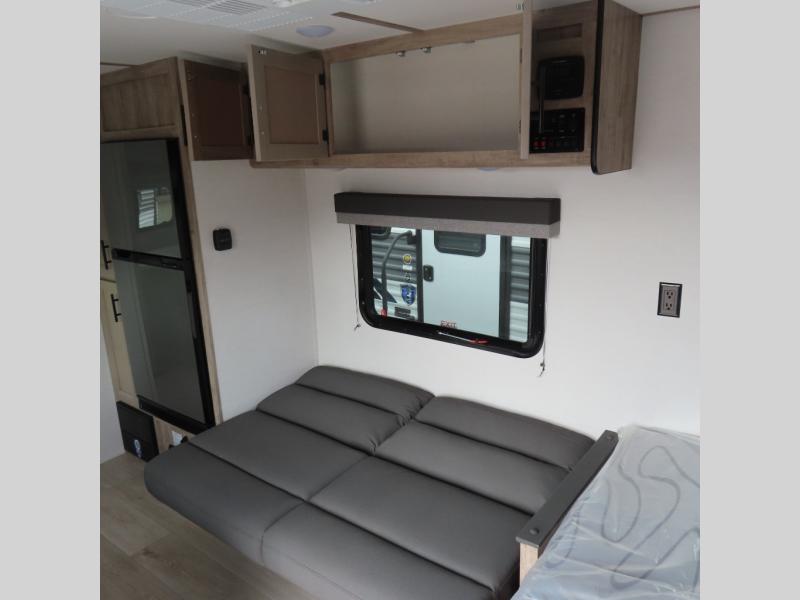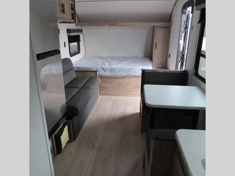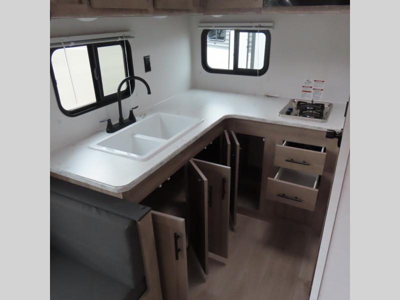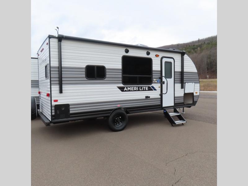 If you're looking for an affordable, lightweight travel trailer, you've found it in the Ameri-Lite Super Lite by Gulf Stream. These models may be lighter in weight, but they don't skimp out on comfortable features. Each unit includes high-performance vinyl flooring throughout, a white kitchen sink, craft-made cabinetry with designer pulls, plus fabric-wrapped box valances to make you feel right at home. You'll enjoy the 6' 8" interior height, wood ceiling trim, multiple USB ports, and more features included within the Camping Package. These models also include a tankless water heater, a central control panel to control your unit's functions, plus plenty of safety features you are sure to appreciate for your family. You can't go wrong with an Ameri-Lite Super Lite travel trailer. Choose your favorite floorplan today!
