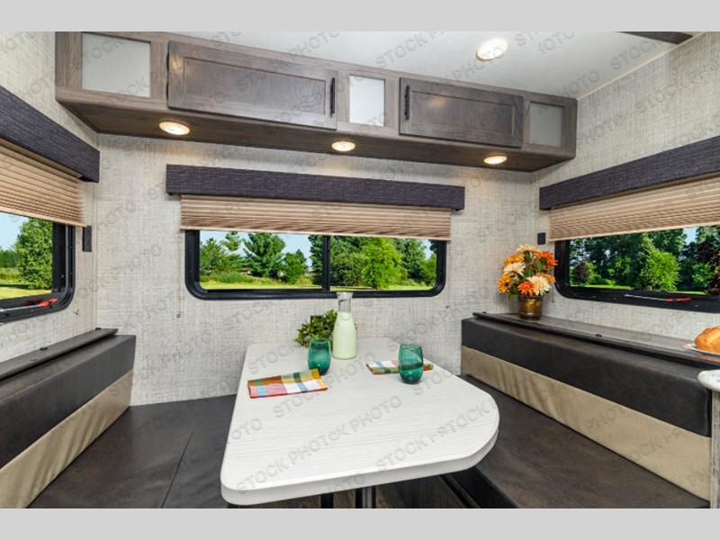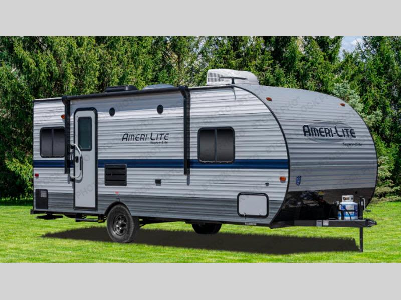 You'll feel right at home in this Ameri-Lite Super Lite travel trailer that includes a front bedroom with a queen bed. The private toilet and sink is right across the hall from the shower allowing two people to get ready at once, and the linen closet provides a place to store clean towels. Prepare a hearty breakfast on the two-burner cooktop or use the microwave oven for instant oatmeal. The booth dinette will be the perfect place to dine at, and at night, this area can be converted to sleeping space for an overnight guest. This model also includes plenty of interior storage as well as an exterior pass-through compartment for fishing poles and lawn chairs!