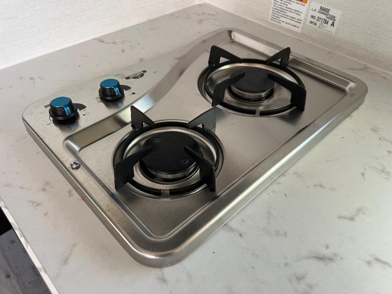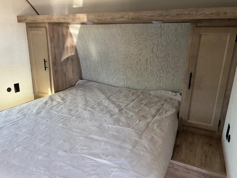 Invite more along with double-size bunks in this 'Show Stopper' travel trailer! The private shower and toilet is close to the bunks if you're camping with little ones, and there is a sink just outside the door so two people can freshen up at once. You and your spouse will get comfortable on the front queen bed, or you can choose the optional Murphy bed to enjoy more seating space during the day. This model includes a booth dinette to dine at or play a board game on rainy days!