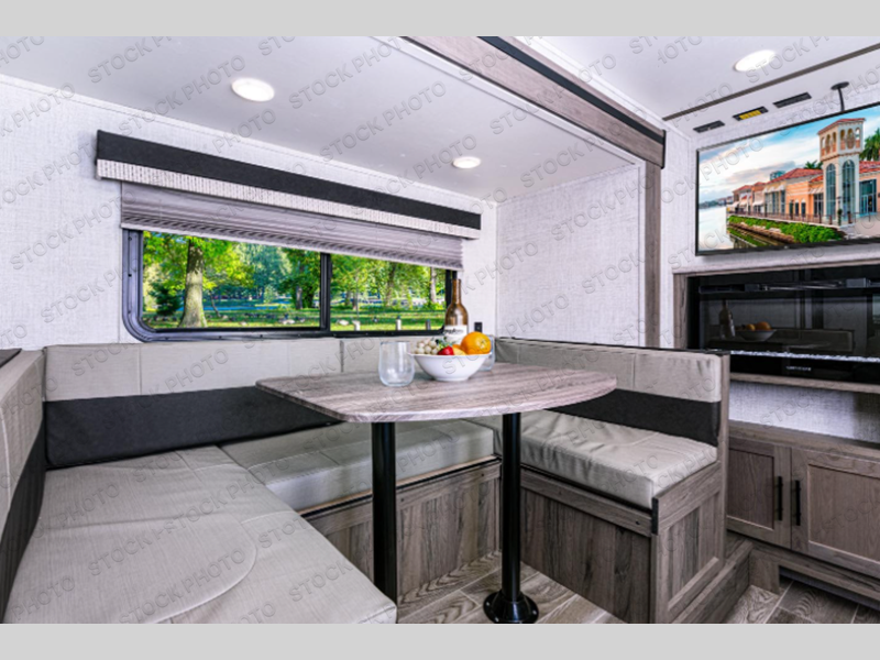 Make this comfortable travel trailer your home-away-from-home on the weekends. You will love having your own master bedroom up front with a queen bed and dual wardrobes for your clothes. The walk-through bath is spacious, allowing you to easily clean up each day. Your guests can sleep on the jackknife sofa or U-shaped dinette, and the fireplace here will make it feel more like home. This model includes all the appliances needed each day to prepare home-cooked meals, including a three burner cooktop, a microwave oven, and a 10.7 cu. ft. Everchill refrigerator/freezer. There is even an outdoor beverage center with a refrigerator and an icemaker to entertain guests!