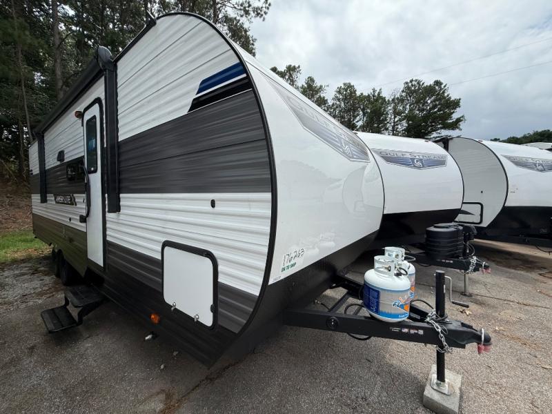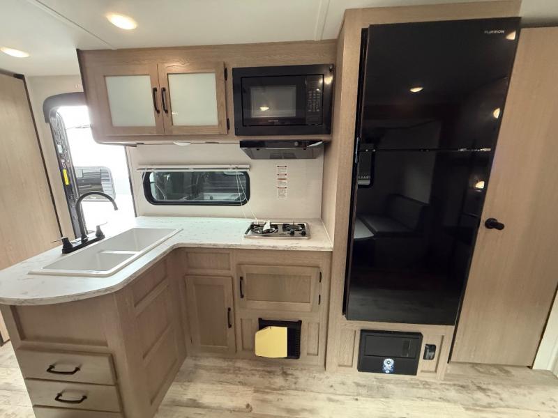 The Ameri-Lite Ultra Lite travel trailers by Gulf Stream are the perfect RV for families wanting to start their camping lifestyle, but not break the bank. These lightweight units are built with a diamond plate lower front, a one-piece synthetic vinyl roof, and a uni-body construction with steel hurricane straps tying the walls to the floor for added durability. The front power hitch jack and four stabilizer jacks will make set-up hassle-free once you arrive at the campground, and you can put out the electric awning to rest in the shade when you're done. Each model includes convenient amenities, like the 13,500 BTU A/C, the tankless water heater, a central control panel, and multiple USB ports for your tablet, phone, and camera! The inside is designed to make you feel at home with radiant LED lighting, designer kitchen backsplash, pleated privacy shades, craft-made cabinetry, plus many more features. Start your RV lifestyle with an affordable, lightweight Ameri-Lite Ultra Lite travel trailer today!