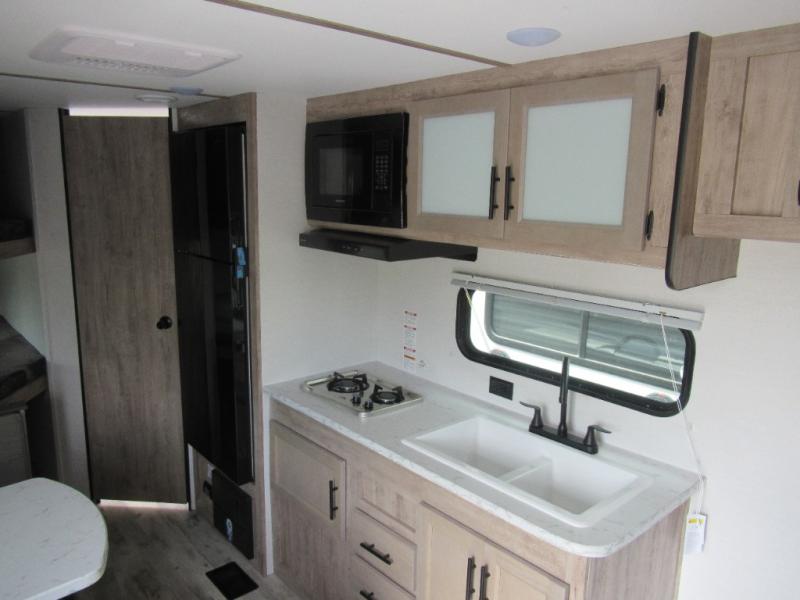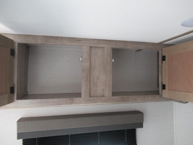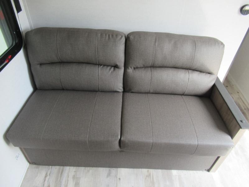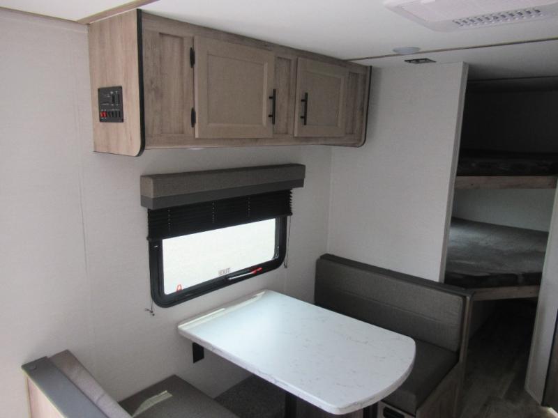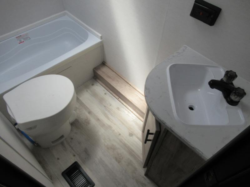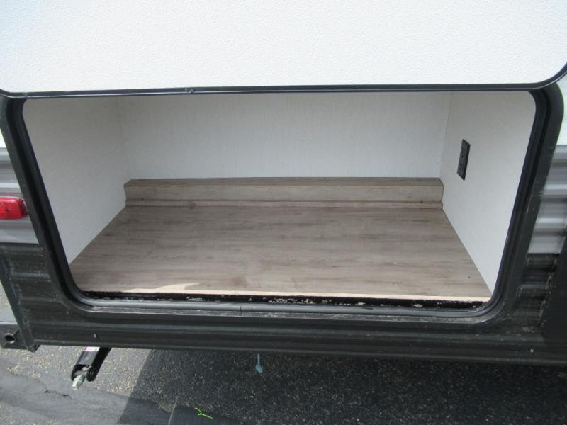 Make your reservations, start planning your menu, and load up your clothes, games, food and more for a fun weekend camping in this 'Show Stopper' trailer! You will have a front private bedroom with a queen-size bed and closets, while your family and friends can choose from the double-size bunks and furniture to sleep on. There is a convertible sofa and a booth dinette, plus a galley kitchen with a microwave oven, sink, plus overhead storage for pots, pans, and dry goods. The rear corner full bathroom offers a tub/shower, toilet, and a sink to be able to get cleaned up in after hiking or relaxing by a fire.