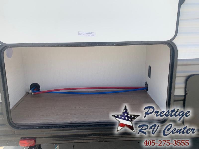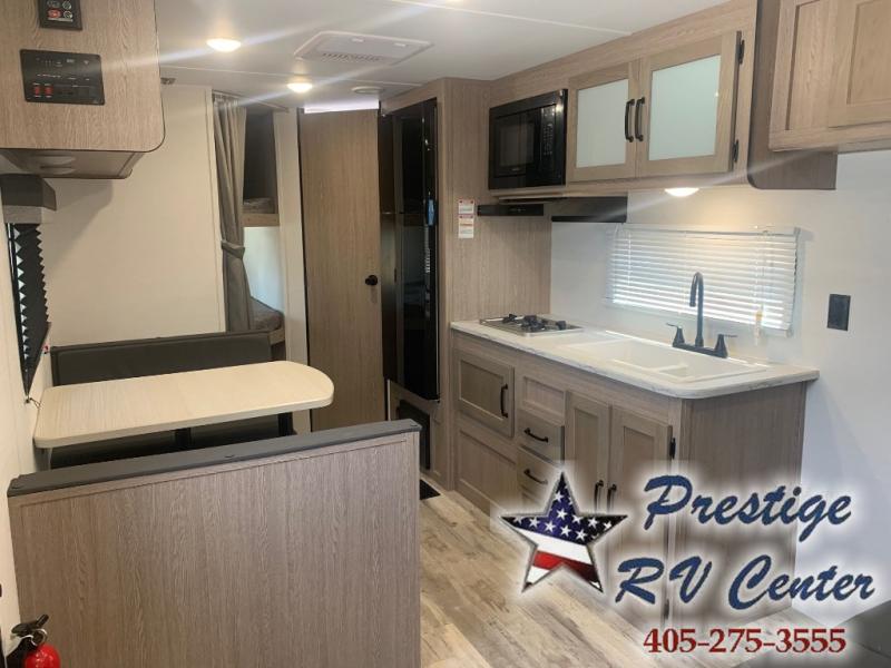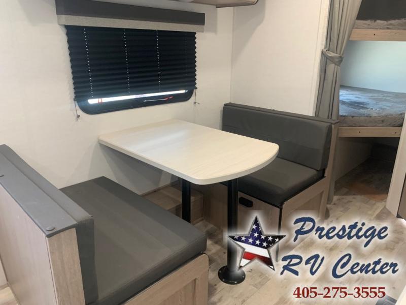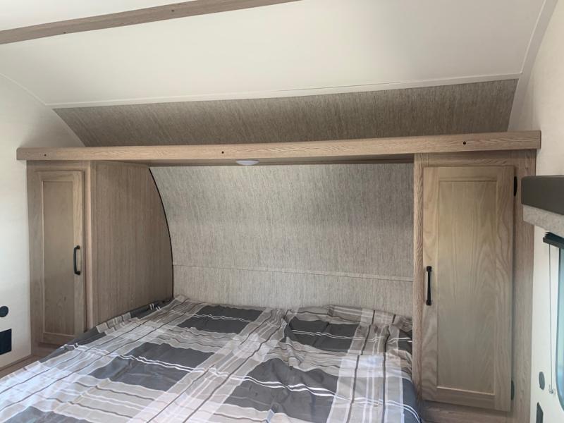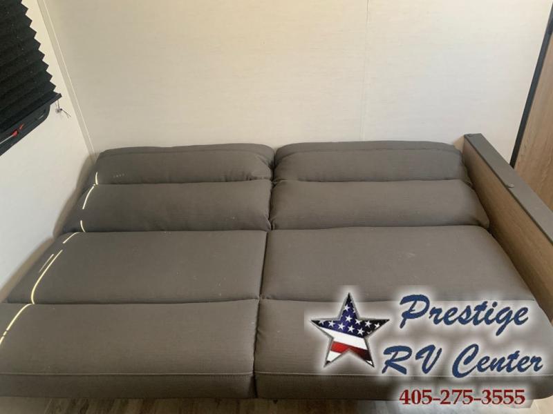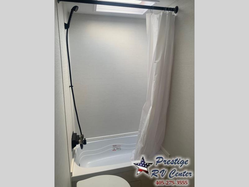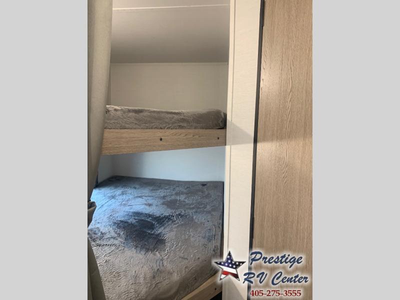 Make your reservations, start planning your menu, and load up your clothes, games, food and more for a fun weekend camping in this 'Show Stopper' trailer! You will have a front private bedroom with a queen-size bed and closets, while your family and friends can choose from the double-size bunks and furniture to sleep on. There is a convertible sofa and a booth dinette, plus a galley kitchen with a microwave oven, sink, plus overhead storage for pots, pans, and dry goods. The rear corner full bathroom offers a tub/shower, toilet, and a sink to be able to get cleaned up in after hiking or relaxing by a fire.