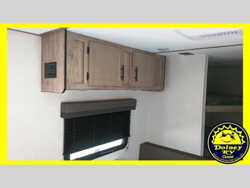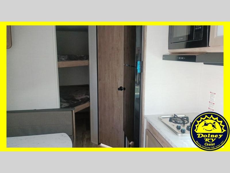 Make your reservations, start planning your menu, and load up your clothes, games, food and more for a fun weekend camping in this 'Show Stopper' trailer! You will have a front private bedroom with a queen-size bed and closets, while your family and friends can choose from the double-size bunks and furniture to sleep on. There is a convertible sofa and a booth dinette, plus a galley kitchen with a microwave oven, sink, plus overhead storage for pots, pans, and dry goods. The rear corner full bathroom offers a tub/shower, toilet, and a sink to be able to get cleaned up in after hiking or relaxing by a fire.