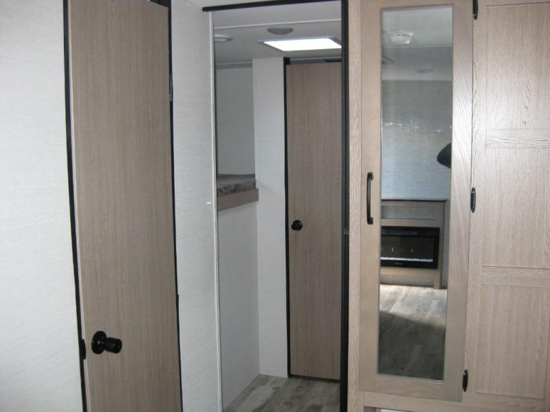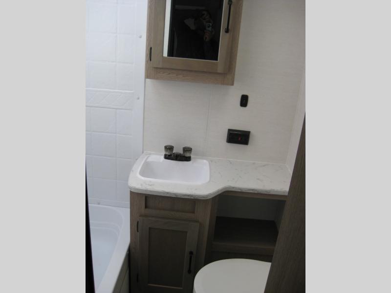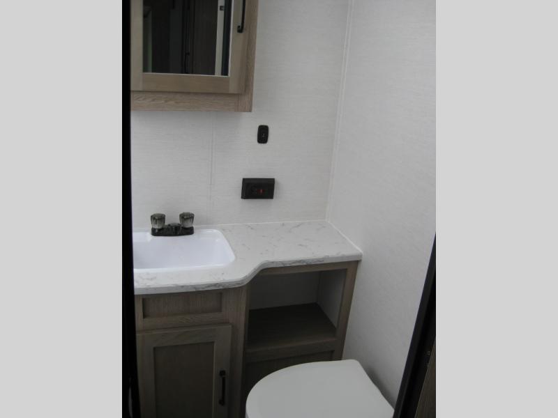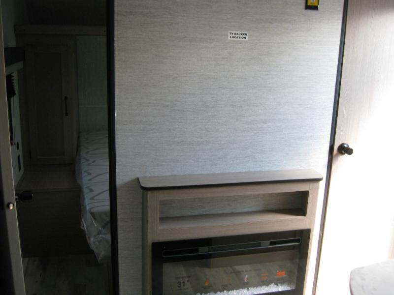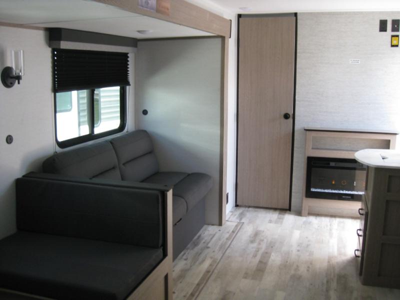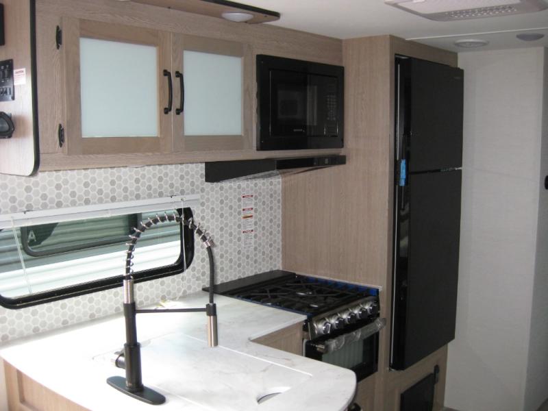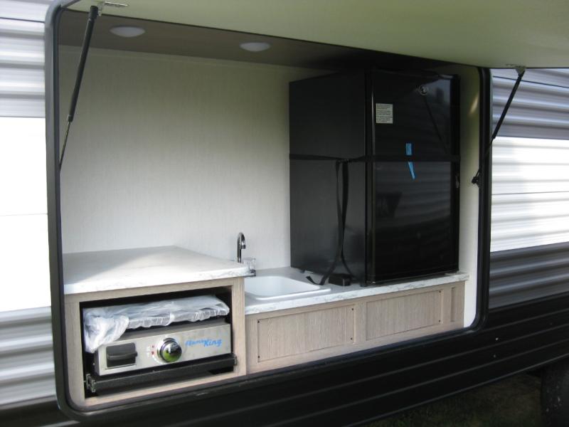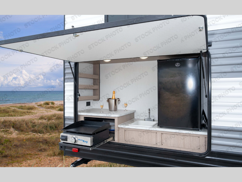 A private bunkhouse for your guests or the kids, and a private bedroom up front make this the perfect travel trailer for camping adventures. The large slide out includes the booth dinette and sofa, which will be great to dine at and relax, and the full bath is easily accessible for everyone. The kitchen includes everything you need to prepare meals each day, including a three burner cooktop and a 10.7 cu. ft. Everchill refrigerator/freezer for perishables. You can also choose to add the optional outside kitchen if you are one that loves to spend a lot of time outdoors!