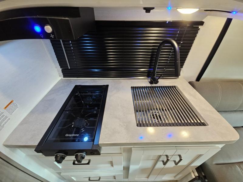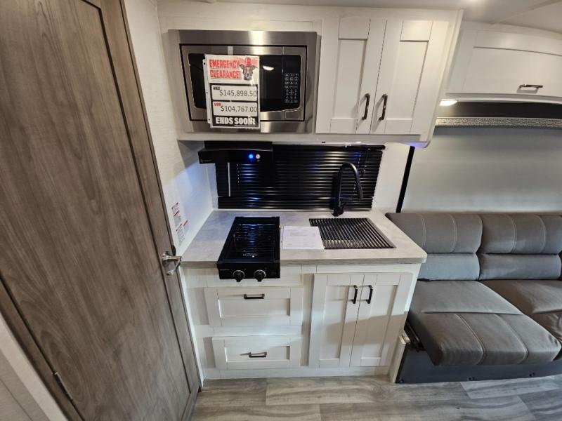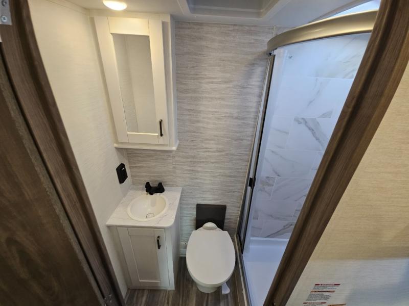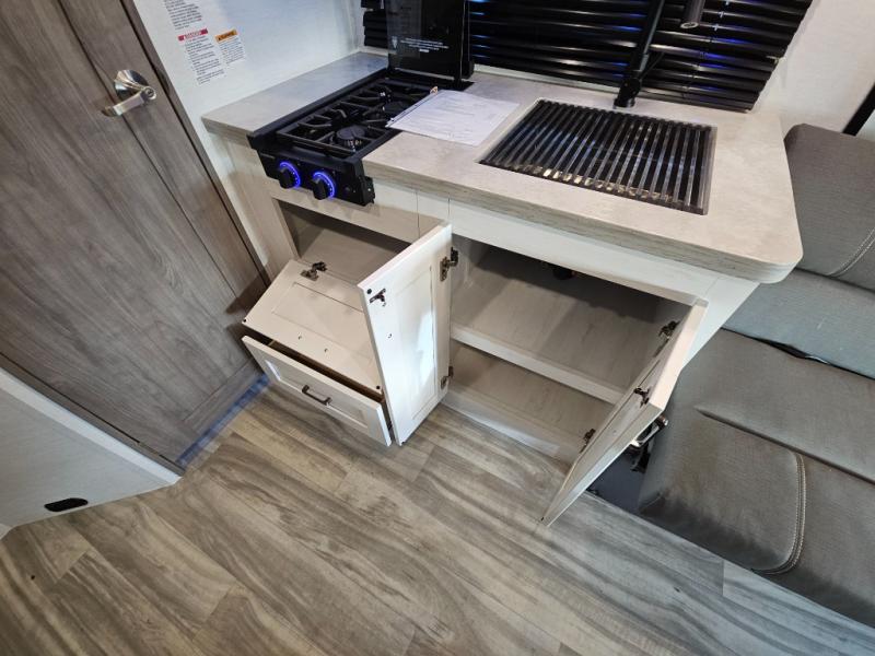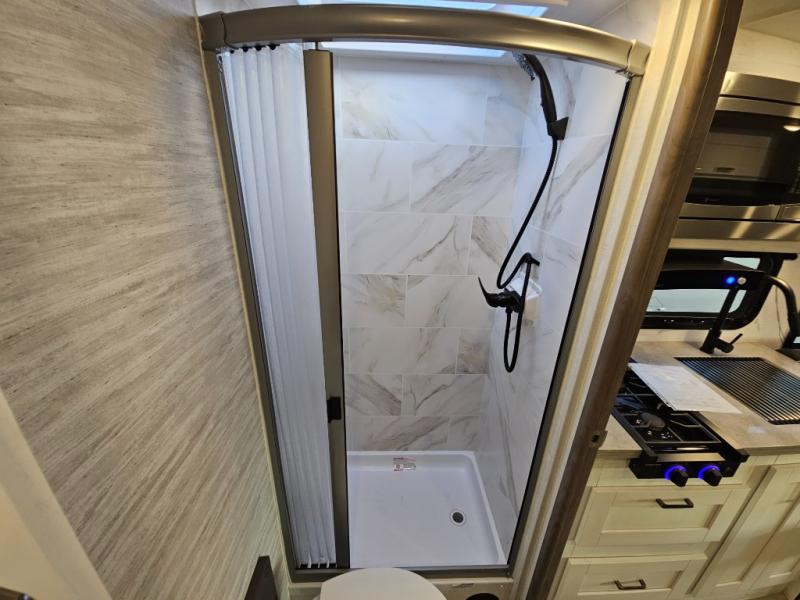 Whether you enjoy tailgating at events or games, traveling to see friends, or meeting a group at a local campground, this coach offers comfort for you to enjoy everything from relaxing, sleeping, eating and staying clean! The 2-way driver and passenger seats are comfortable just like the two soft touch jackknife sofas that offer seating during the daytime and sleeping space at night. The cook will have full amenities to make meals, plus a 12V refrigerator to store leftovers. You will find the full bathroom is super convenient while on the road or at your destination, and the wardrobe is just outside the door to keep your clothes wrinkle-free. And outside, the electric awning gives you an outdoor living area protected from the elements, just add your camping chairs. There is also a Lithium Edition available with this model for added power options!