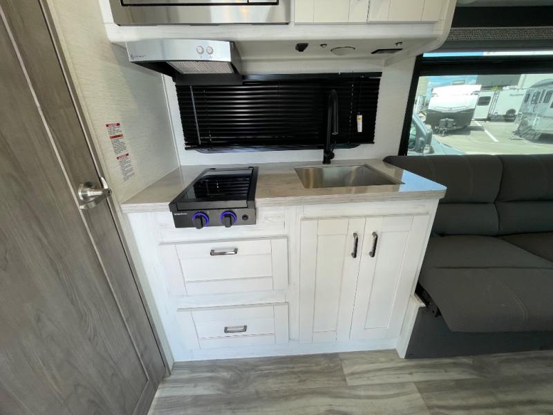 With any Gulf Stream RV BT Cruiser Class B+ gas motorhome, you will appreciate the rugged, reliable, fuel efficient Ford E-350 or E-450 chassis depending on the coach you choose, and the ease of maneuvering the motorhome on two-lane roads, city streets and into tight parking spaces! Some key features include the smooth fiberglass laminated sidewalls, and fiberglass front and rear caps, as well as the kitchen appliances and the soft pleated privacy shades. Some of the included features within the BT Cruiser Bonus Package are a 4.0 kW Onan generator to keep things running, fiberglass running boards for easy entry and exit, the IRD dual battery charging system, upgraded LED interior and exterior lighting, and vinyl flooring for easy care to mention a few. Make your selection today, and enjoy the drive as much as camping!