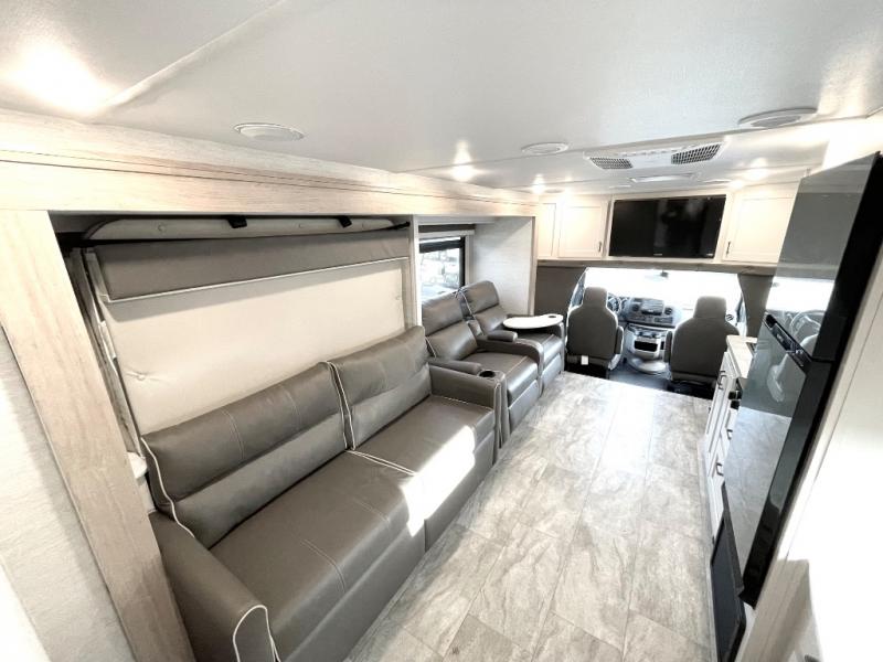 With any Gulf Stream RV BT Cruiser Class B+ gas motorhome, you will appreciate the rugged, reliable, fuel efficient Ford E-350 or E-450 chassis depending on the coach you choose, and the ease of maneuvering the motorhome on two-lane roads, city streets and into tight parking spaces! Some key features include the smooth fiberglass laminated sidewalls, and fiberglass front and rear caps, as well as the kitchen appliances and the soft pleated privacy shades. Some of the included features within the BT Cruiser Bonus Package are a 4.0 kW Onan generator to keep things running, fiberglass running boards for easy entry and exit, the IRD dual battery charging system, upgraded LED interior and exterior lighting, and vinyl flooring for easy care to mention a few. Make your selection today, and enjoy the drive as much as camping!