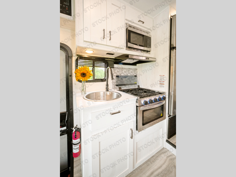 Looking for sleeping space for five, extra storage space, and loads of comfort in your next motorhome? This motorhome gives you a double-door basement storage allowing you to bring extra gear and an interior wardrobe and overhead cabinets so you can travel for a weekend getaway or a month-long vacation. You will have your own bed while your guests or kids sleep on the overhead bunk and booth dinette, and you will also be able to make meals in the galley kitchen and get cleaned up in your own full bathroom.