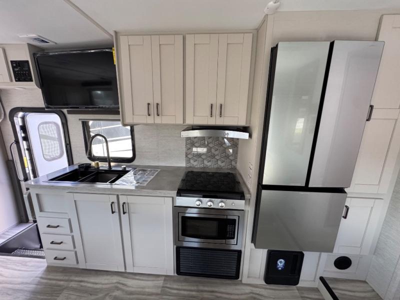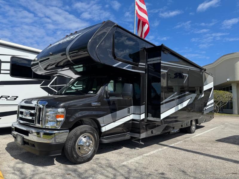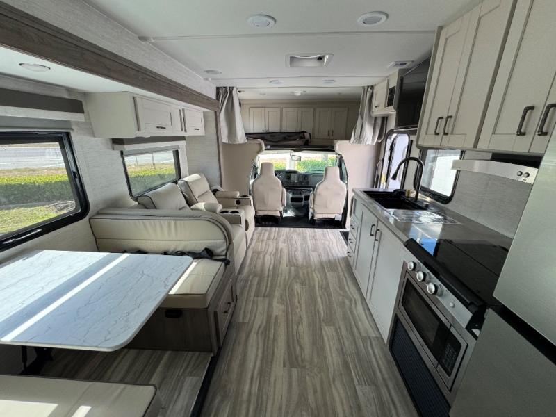 Each one of these Gulf Stream RV Conquest Class C gas motorhomes is built with a Cradle of Strength® on either the Ford E350 or E450 chassis depending on the model! Their construction also consists of a welded aluminum perimeter frame, a PVC roof, and high gloss white fiberglass sidewalls with Azdel substrate to prevent rotting. The included Conquest Luxury Package comes with vinyl flooring throughout for an easier clean, upgraded designer graphics, a 4.0kW enclosed generator, plus an outside hot/cold shower to name a few comforts and conveniences.