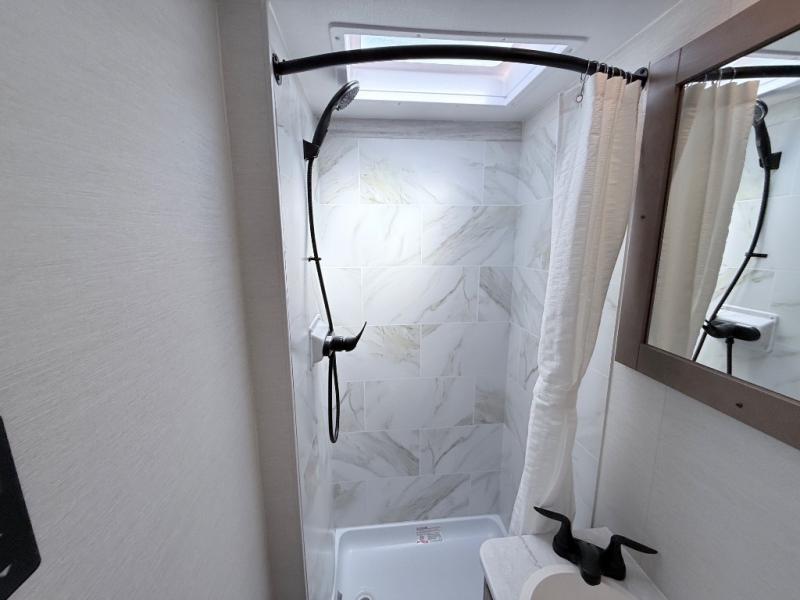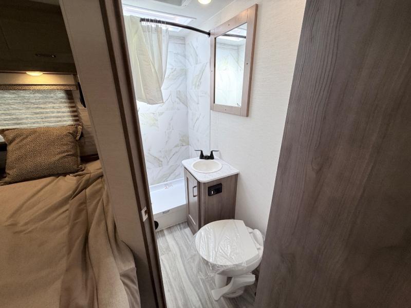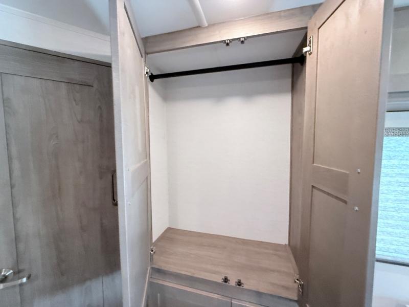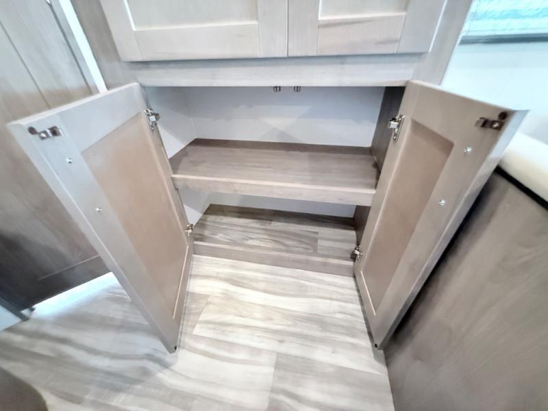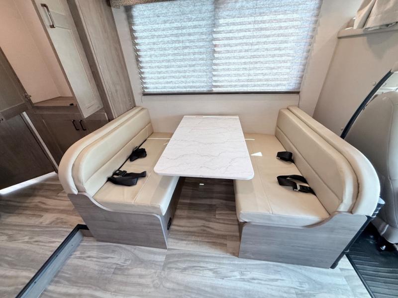 Looking for sleeping space for five, extra storage space, and loads of comfort in your next motorhome? This motorhome gives you a double-door basement storage allowing you to bring extra gear and an interior wardrobe and overhead cabinets so you can travel for a weekend getaway or a month-long vacation. You will have your own bed while your guests or kids sleep on the overhead bunk and booth dinette, and you will also be able to make meals in the galley kitchen and get cleaned up in your own full bathroom.