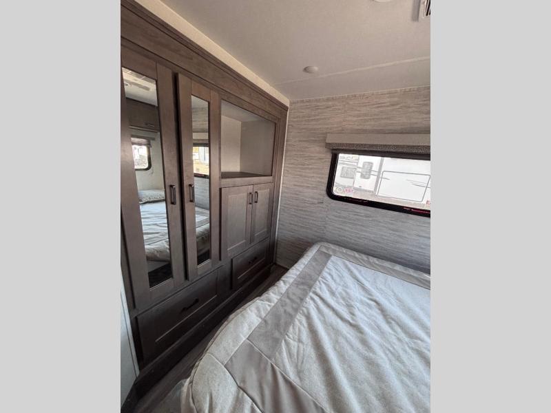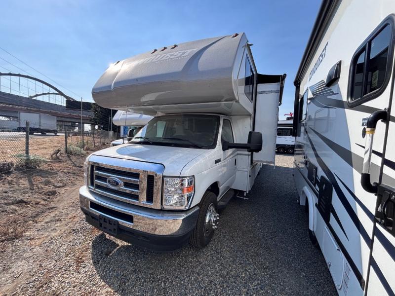 Each one of these Gulf Stream RV Conquest Class C gas motorhomes is built with a Cradle of Strength® on either the Ford E350 or E450 chassis depending on the model! Their construction also consists of a welded aluminum perimeter frame, a PVC roof, and high gloss white fiberglass sidewalls with Azdel substrate to prevent rotting. The included Conquest Luxury Package comes with vinyl flooring throughout for an easier clean, upgraded designer graphics, a 4.0kW enclosed generator, plus an outside hot/cold shower to name a few comforts and conveniences.